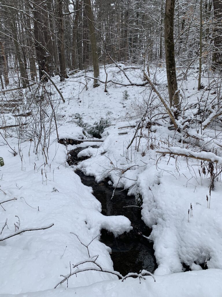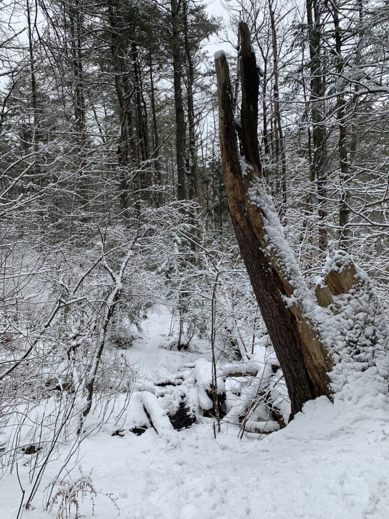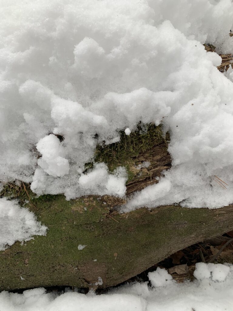 I was surprised to see moss still peeking out from under the snow on this log! I didn’t know it was evergreen, but it is powering through the winter along with the Eastern Hemlocks lining the trail.