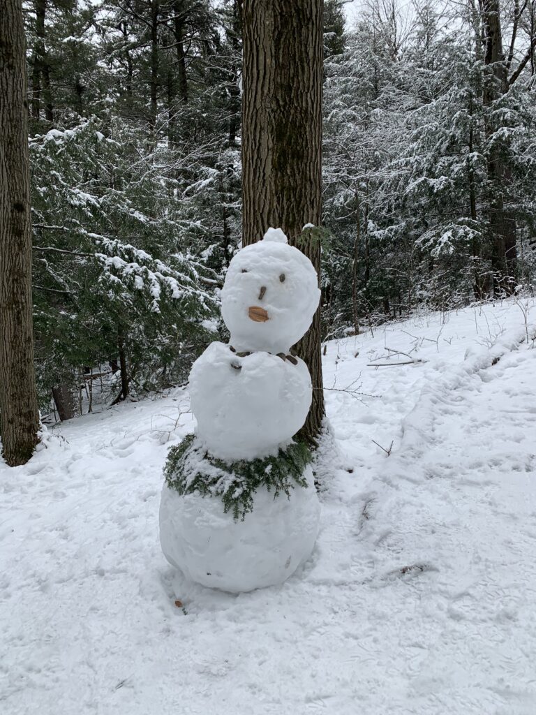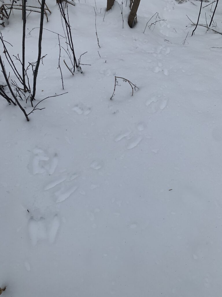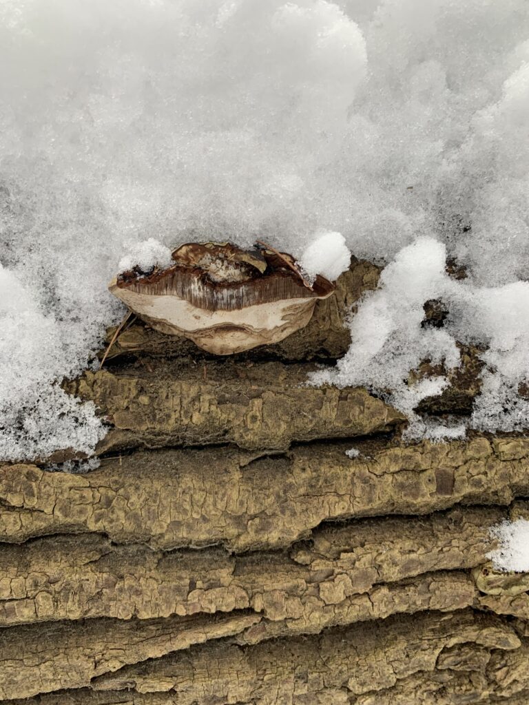 For the sake of having more to report on, I want to include some very cute rabbit prints that I found closer to the entrance of Centennial Woods. Nearby shelf mushrooms were chewed down, likely by deer! Lastly, I saw an awesome snow creation.