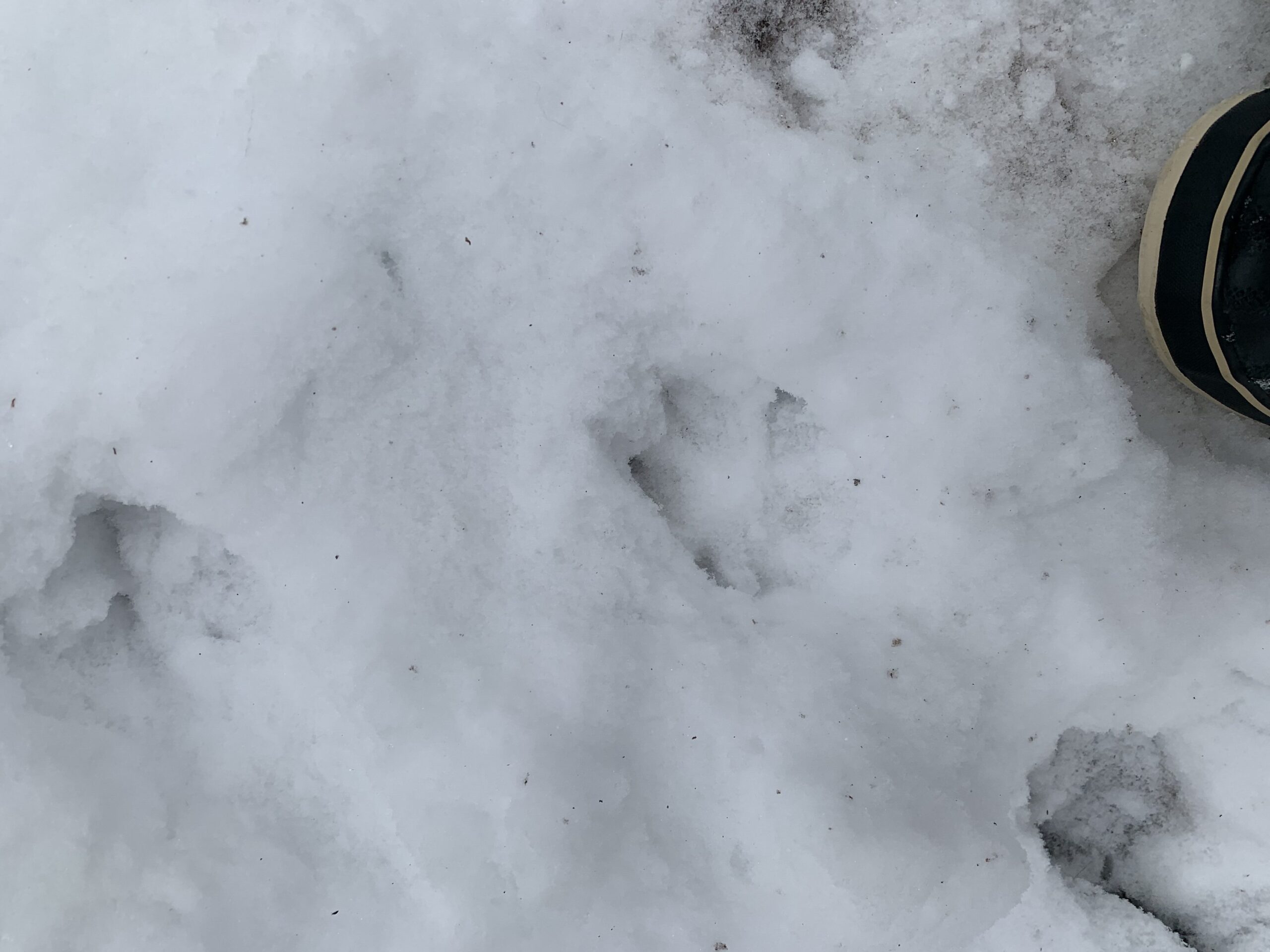 As it’s located on a trail, there were quite a few prints from people and even a dog. I also witnessed a pair of very vocal crows, a Dark-eyed Junco, and a Red-bellied Woodpecker. Unfortunately, that was the extent of the animal activity that I was able to find at my place.