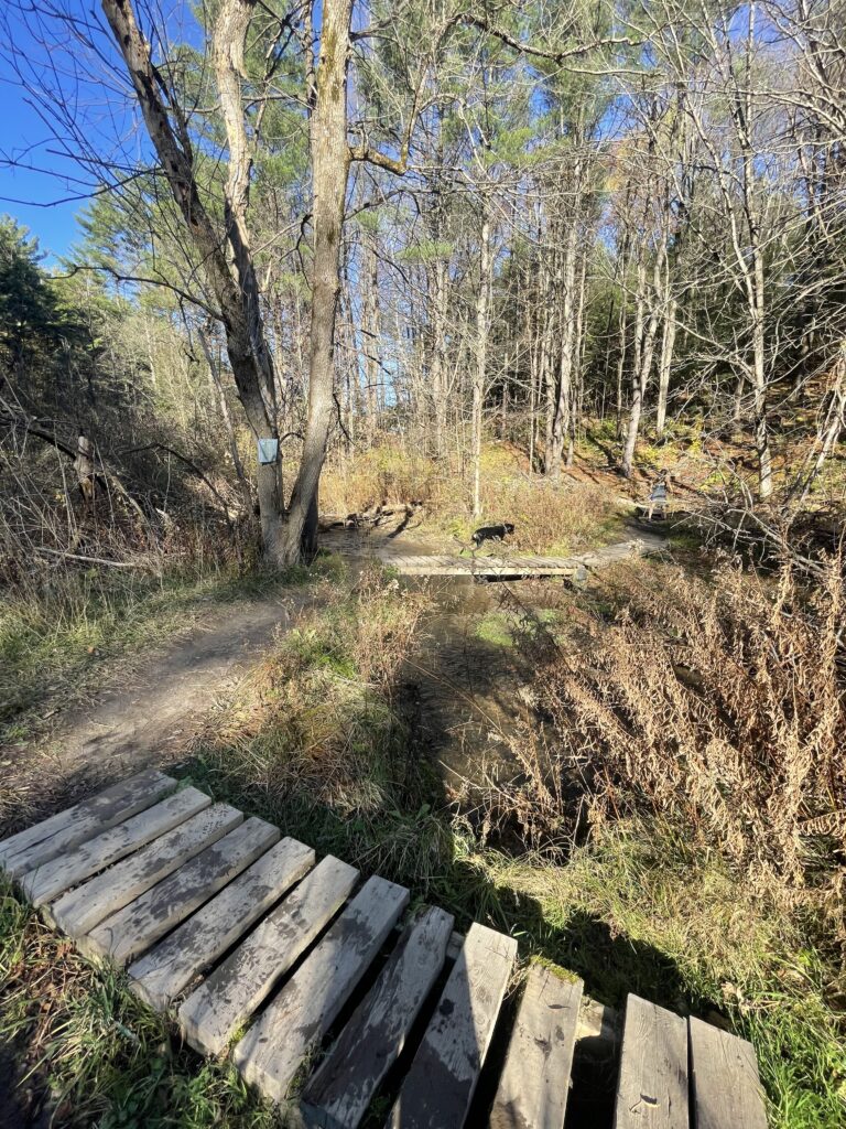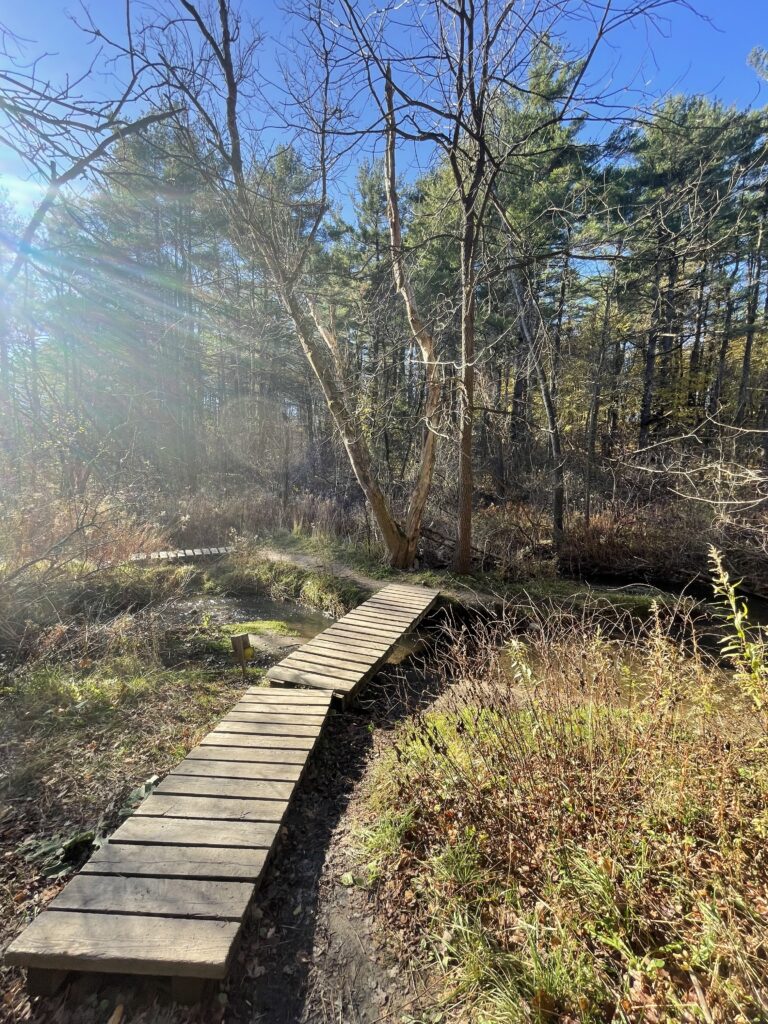 7 October 2022: It was a beautiful sunny day today as I biked to my phenology spot in Centennial woods. I sat on the small bridge that crossed Centennial brook and took 15 minutes to use my senses and engage with the beauty of my surroundings. The wind was strong today, so most of my silent listening observations were interrupted by continuous gusts of high-speed winds, but for a few, I captured the wonderful bird noises of what sounded like a Chickadee and an American Robin. I sat on the bridge and listened to the calming ripples of water quickly passing under my feet and felt the sun’s warmth hitting my face. I felt at peace sitting in this area the wonderful sounds, sights, and nature smells created a very warm meditative environment and I believe this quality time I spent admiring the space in the woods helped me connect better with the land.
