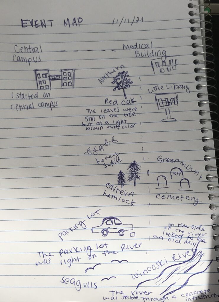 I do consider myself part of the place. I think that everyone is a part of nature but also because I have spent a long time, a year, going to this spot that it has become part of my first year at UVM and it holds memories.