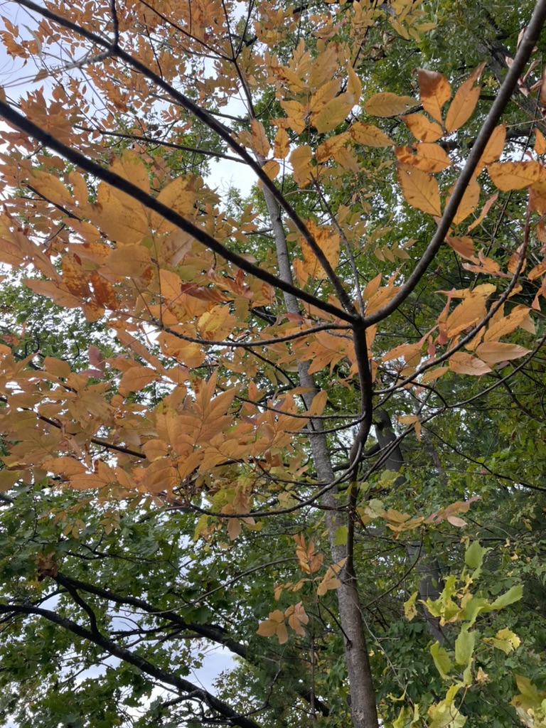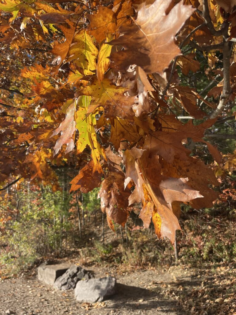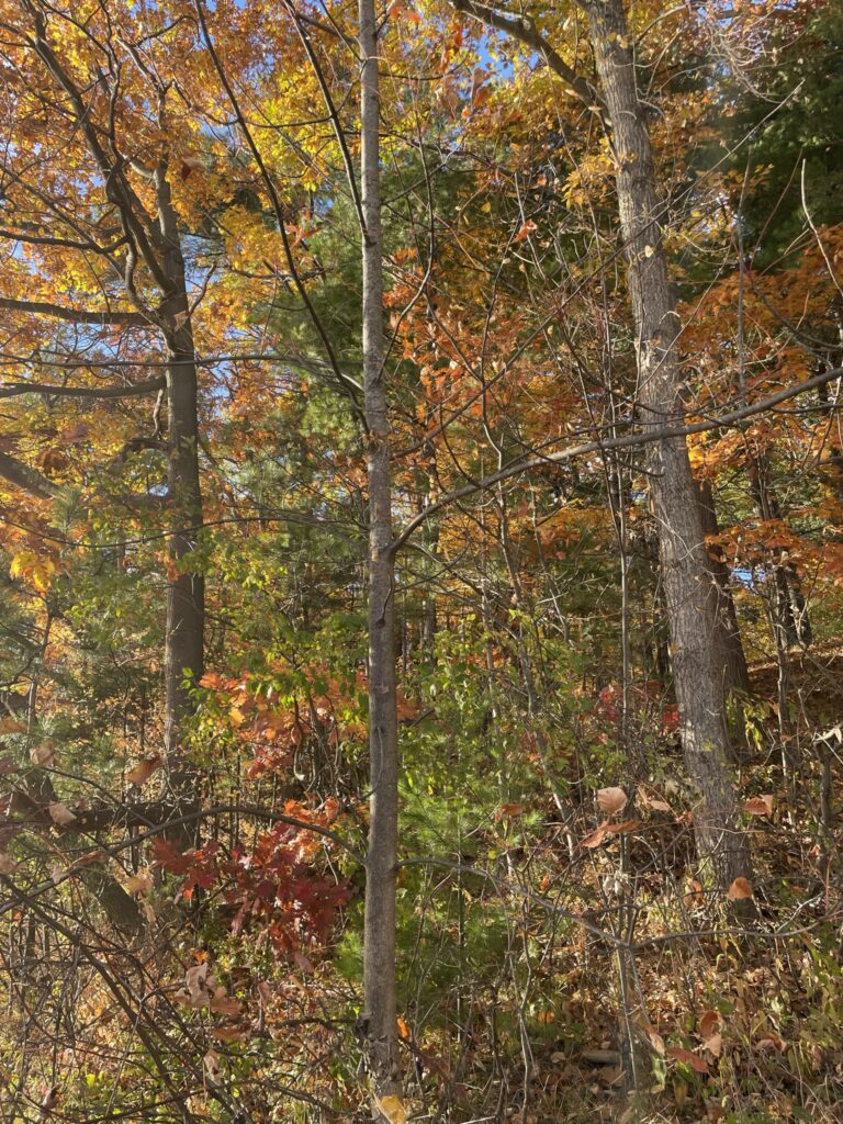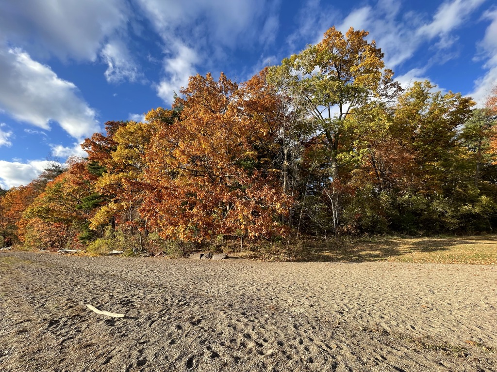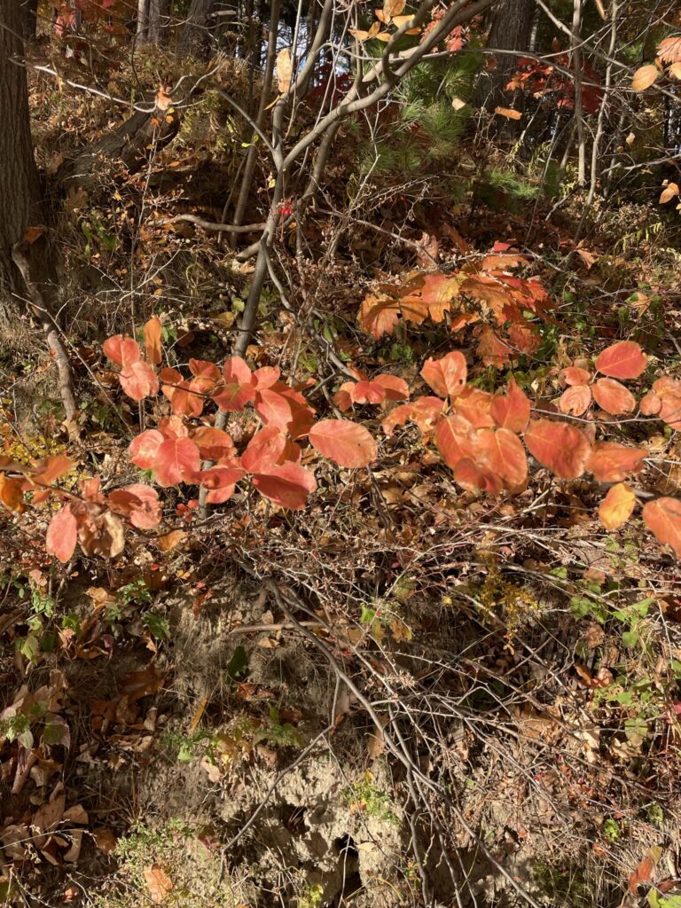 Coming back to my site after about three weeks I could see the development in the phenological cycles very clearly. The large northern red oak at the junction of shore and forest had completely changed color and retained most of its leaves, while the green ash had lost all of its leaves. Some of the barberry plants had also changed color by this time, but not all. The forest floor was covered in leaves and less woody plants were visible. The coniferous eastern white pine needles were more prominent now since many of the leaves of the deciduous species had already fallen.
