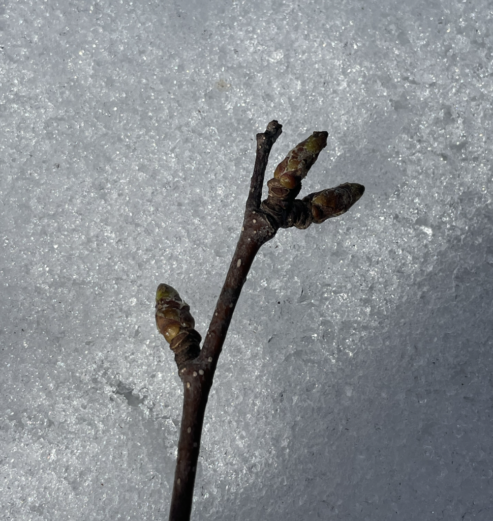 Close to my phenology site, I documented the bud break of a paper birch individual, most of which had already swelled and were beginning to turn green at the tips. Near some of the leaf buds, scaly, protruding flower buds were forming, but none of them were in bloom yet.