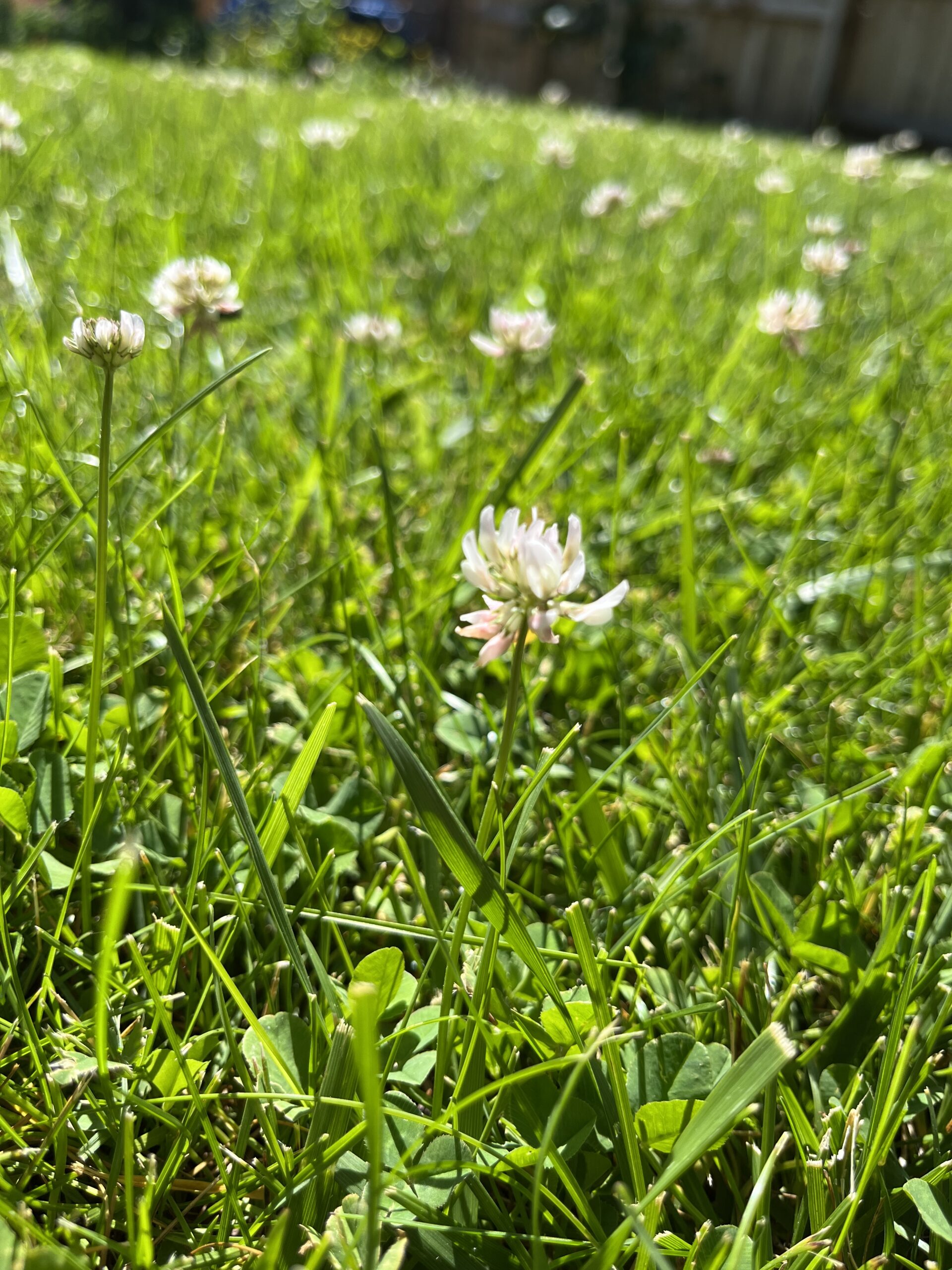 There is also a garden of to the left of the patio, I am unsure of all of the plants but it has kale, lettuce, tomato, some herbs, and chilis growing. In the chicken enclosure where their coop is, there is a small tree that provides them with a great deal of shade. Along one of the fenced edges of the lawn, there are a few small white-capped mushrooms growing just below the surface of the grass. Around the chicken enclosure, there are many more flys than the rest of the yard. They seem to like the smell over there, it smells of chicken poop. While there are no large trees in Zachs yard, in the surrounding yards there are a few. These trees are where the birds are living. I can hear them but I cannot see any.