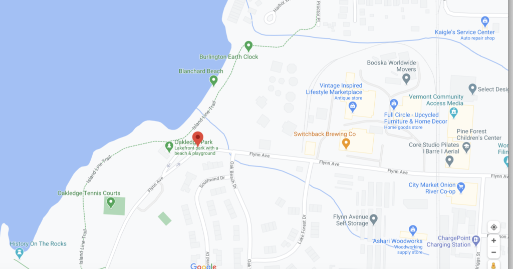 Greetings from Oakledge Park! This land houses two large shelters, two public beaches, a playground, tree houses, countless walking trail, tennis, bocce, and volleyball courts, grills, picnic tables, bathrooms, along with acres of open land. The park is located in the South End of Burlington, just north of the opening to Shelburne Bay. Without a car, the fastest way to get this spot would be by taking a shuttle down to the waterfront and then taking the Island Line Trail until reaching the pavilion next to the park lot. However if one does have access to a car, pull all the way down to the parking lot, left of the pavilion. Once at the pavilion, begin walking down the paved path for roughly 500feet before seeing a set of stairs with multiple paths branching off. Do not climb up the set of stairs but rather walk the path directly in-front of them. Take a couple more steps and you have reached my spot!