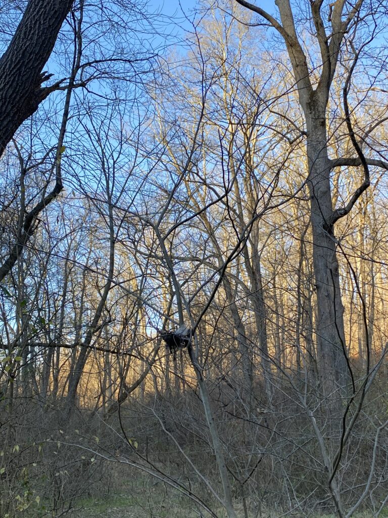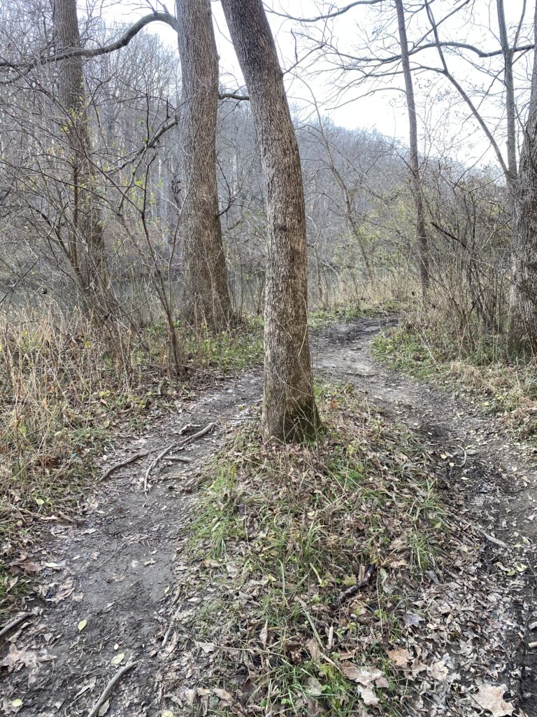 Lots has changed since the last time I was at my phenology spot. Nearly all of the leaves have fallen from the canopy, leaving the forest at its bones. The little path the connects the main path to the riverbank, which is normally hard to spot behind all of the vegetation, was now barren. Because of the recent storm, the paths were much muddier than they had previously been and the water level was much higher on the riverbank. Although the bird calls were still very prominent, the amount wildlife seen of the path and in the forest was virtually nonexistent, except for a singular deer running through the forests.