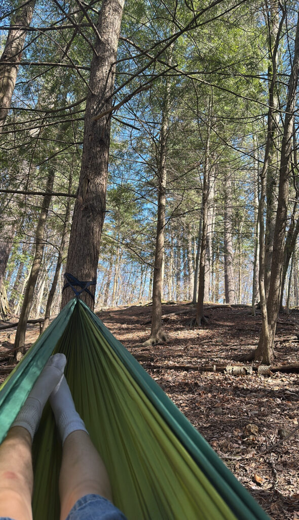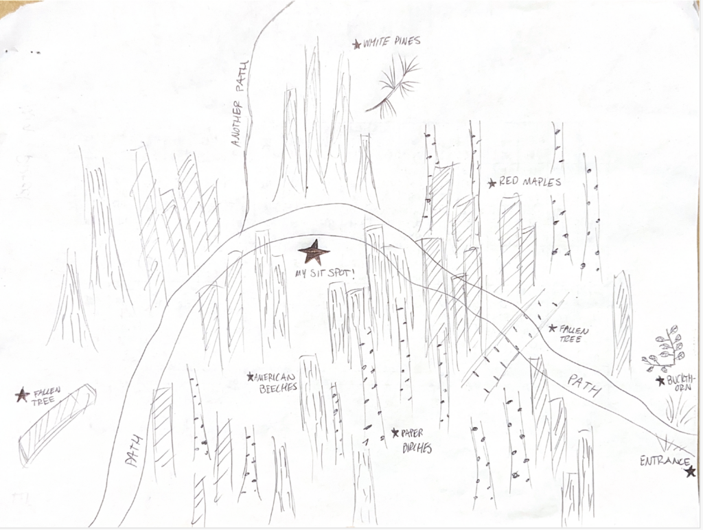 Nature and culture intertwine a lot at my place. Not only me, but a lot of other students use the trails on the woods for recreation and often hammock or read in the woods! It is a perfect natural spot on campus where we don’t have to walk far for access. Being able to value these woods as a place of comfort and serenity is so important to my relationship with the environment. Also learning about what different vegetation and animals live here has connected me to it in a way I wouldn’t have been if I didn’t choose this place as my phenology spot. Seeing how the growth of this forest has changed throughout the seasons has given me knowledge about natural ecosystems and functions of forests in Vermont. I would consider myself a part of my spot since I do visit it quite often, but I also understand its language and its functions as a whole! I am going to miss having a natural area that I can walk to over the summer, but I am excited to see what the forest will look like when I return in the fall!