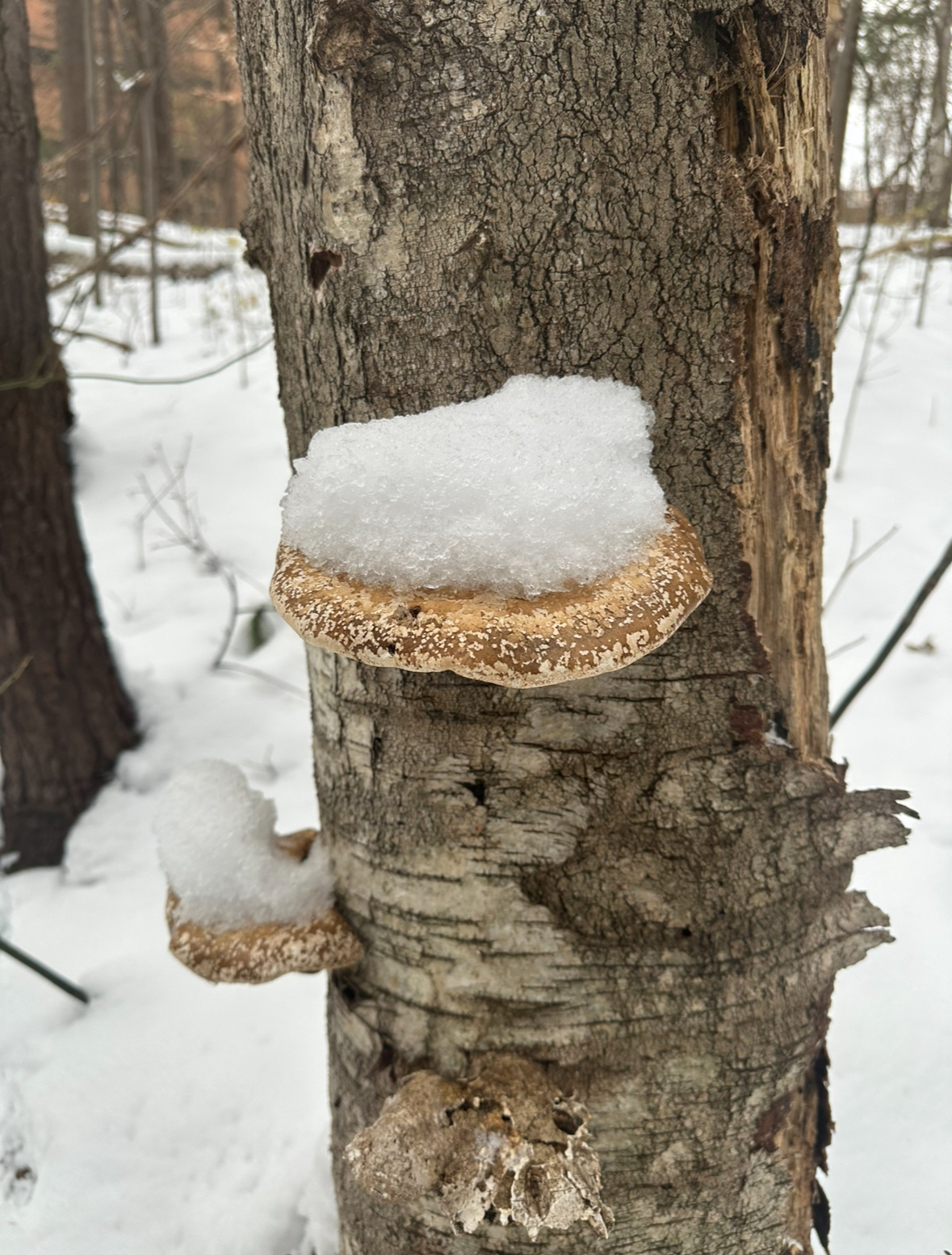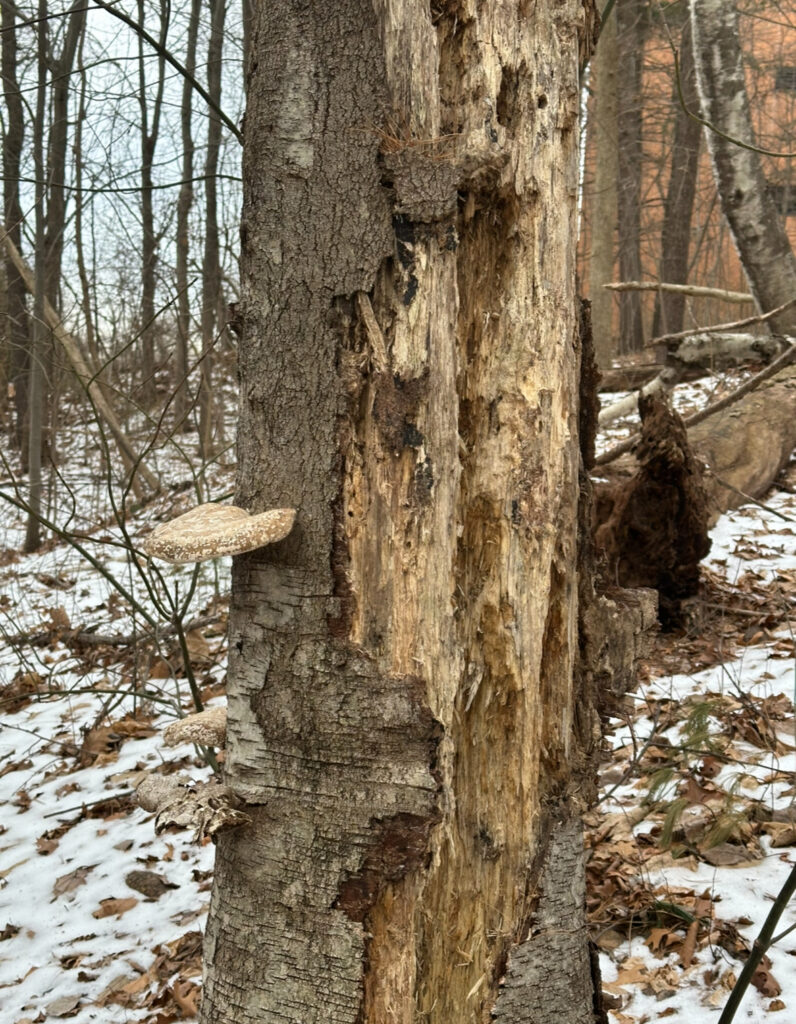 One landmark I have become familiar with is the fallen tree at the beginning of the path (pictured above). This tree has been here since before I have, and it has not moved the entire time. Another landmark I am familiar with is the Birch Polypore fungus (pictured left) that has been on one of the birch trees throughout all the seasons in which I have visited my spot. Every time I come to my spot I notice it and I still find it a super cool part of my place.