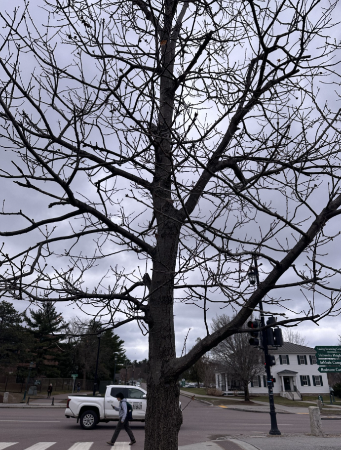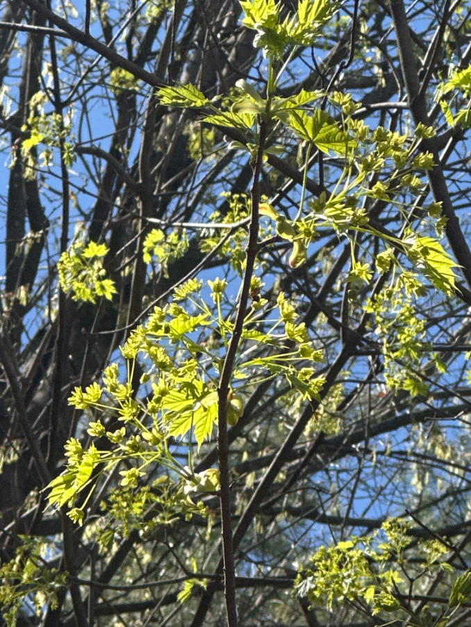 Visiting my phenology spot for the last time was bittersweet because I often visit this spot outside of class. Being able to see all of the changes in this forest behind my dorm was very meaningful for me because I was able to see how an environment different than my one back home has changed alongside me this entire school year. At the beginning of the fall semester, my spot was very overgrown, the trees had their full canopies of leaves and some were even starting to turn to their fall colors. I identified a majority of common Vermont trees, including Eastern White Pines, Red Maples, American Beeches, and Paper Birches. I remember hearing a couple of birds like Blue Jays and Chickadees. Now when I returned to my spot, a lot of the trees only had buds or their buds had just begun to break! Ferns were starting to pop up from the ground and unfurl, red maples were starting to grow their leaves, and a majority of young trees had an abundance of small leaves poking out. New growth was starting, something I had not been able to see at the beginning of the school year.