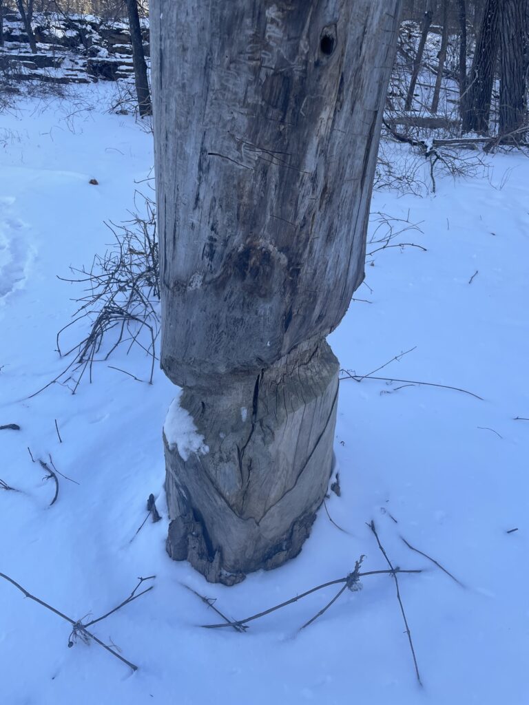 This week me and my friend Jc went behind trinity campus to the salmon hole on the Winooski River. We started walking around 4 pm and the views were amazing. The first signs of animals besides the crows that were cooing in the trees were an old tree that looked like it had been chewed by a beaver.