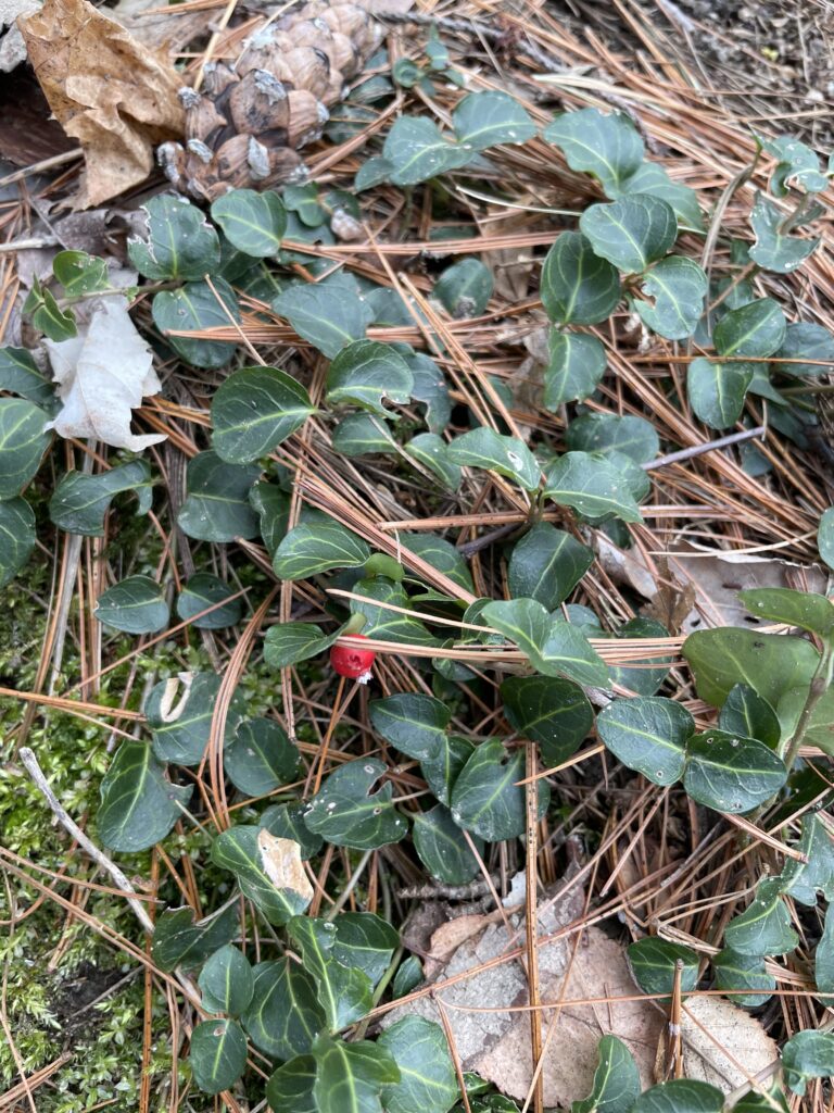 Partidge Berry (Mitchella repens) Spotted at Trinity Woods.