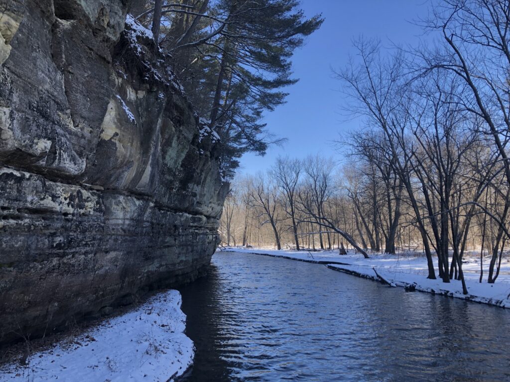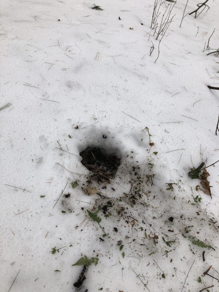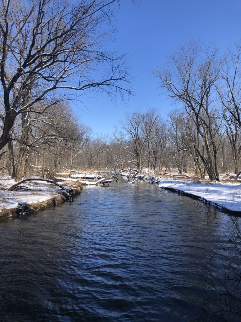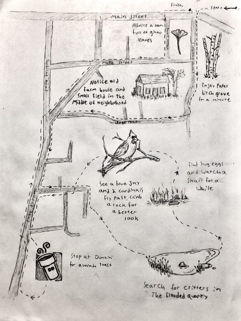 My ears instantly tuned to the sounds of birds in the canopy, which was refreshing given the near silence I’d experienced throughout the winter months. I stopped a few times on my way to the streambed, photographing birds at birdfeeders put up for a bio lab. Aside from the typical birdfeeder crowd, a white-bellied nuthatch swooped down and an elusive eastern towhee scampered out for just long enough to snap a picture.
