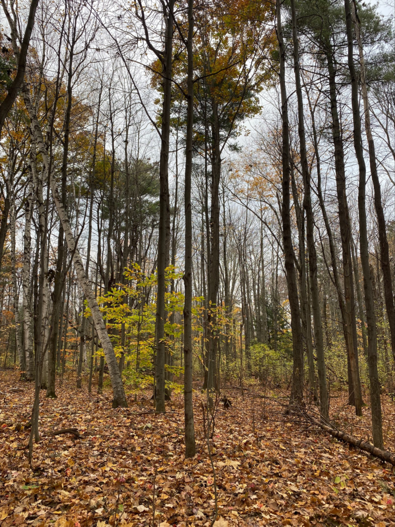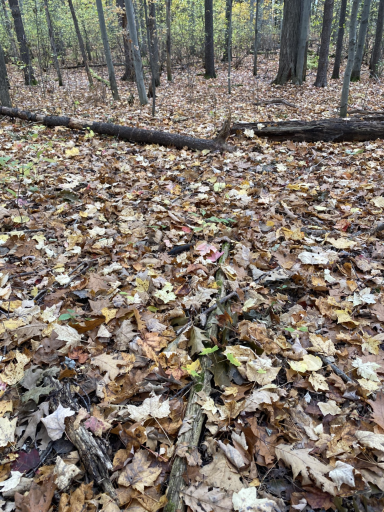 Since my previous visit I have noticed that many of the leaves have fallen off the trees surrounding my spot. The two Northern Red Oaks that I sat between had the most leaves left on them. The maple trees I observed at my last visit were now completely bare whereas some young American Beech trees near me still held onto many leaves that only had just begun turning color.