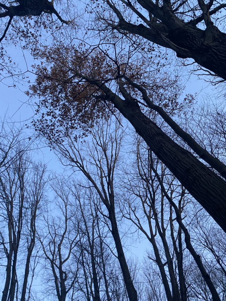 Winter is approaching and Red Rocks Park is displaying more signs of phenological change. Trees have begun to drop their final leaves and undergrowth has become sparser. As I walk to my spot, I notice the leaves under me are frozen and the forest on both sides of me is dusted with a light covering of snow. An expansive layer of ice stretches from tree to tree far back from my phenology spot. I arrived at my spot at the same time as I usually do, but this time the sun has already begun to set so I start recording my observations quickly.