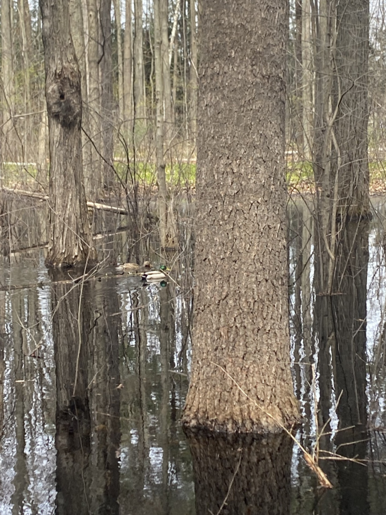 On Saturday, I made my last visit to Red Rocks Park for this phenology blog. It was a warm and sunny day so I was motivated to be the most observant of phenological changes in my spot thus far, and rightly so because there were some big ones. Firstly, all of the snow had melted and seemingly pooled up more to form an even larger pond a mere 20 feet away from my sit spot. Not only did it make for a nice little water feature in the spot, but it also provided a habitat for Mallards that swam as I was there! A very exciting phenological update since it was the first up close sighting of wildlife other than squirrels this year. After the Mallard sighting I then heard a bumble bee buzzing around me and was able to snap a photo (both species were recorded in iNaturalist for the City Nature Challenge, as mentioned in the previous post). The presence of bees made me really start to see the onset of spring conditions. Speaking of spring conditions, the swelling buds on the maple tree became very noticeable. Another change I noted was that the fallen trees have become more decayed. Now that the snow was gone and the ground was dry, I returned to sitting on the fallen log in between the two Northern Red Oaks that mark my spot. Only this time I noticed that they were more decayed than when I sat on them in the fall. The bird song picked up even more than last visit, as well.