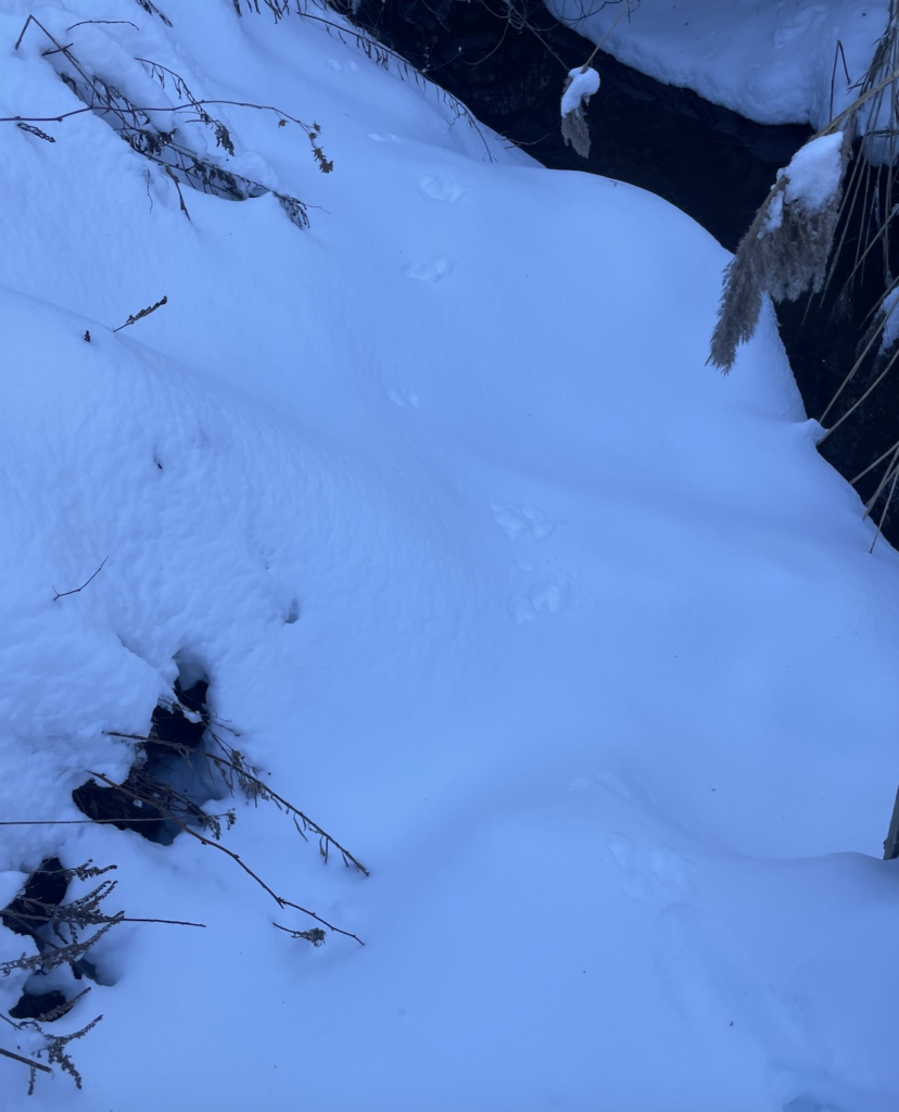 It is the start of the second semester and it was so nice to be able to visit my Phenology Spot. The day I went it was very cold and snowing. Although there was a lot of snow on the ground and trees that didn’t stop me and my friends from visiting our spot in Centennial Woods. When walking through the woods I observed many animal tracks on the sides of the trail. This was my first time observing animal tracks and learning how to identify them. It was a lot of fun to learn this new skill. Some tracks we observed were rabbit and squirrel tracks. I did not see any of these animals but it was cool to observe the traces they left behind.