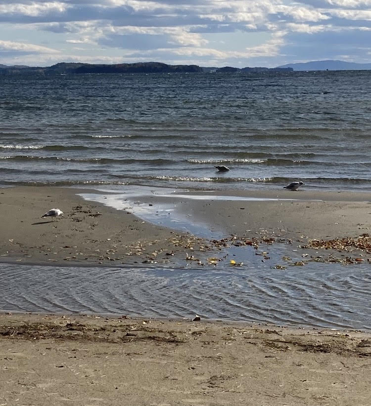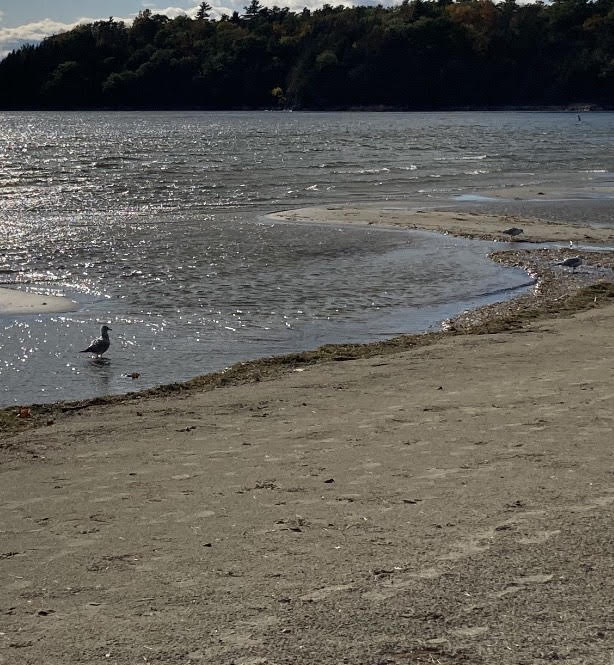 North Beach serves as a habitat for seagulls pictured above. On my last visit, they were cleaning themselves in the water using their beaks. These seagulls are most likely Ring-billed or Herring Gulls because they are the most common gull species in northern New England. During my next visit, I will make sure to check if they have a black ring around the tip of their beak which signifies a Ring-billed Gull. As winter approaches, these birds will begin to migrate to warmer habitats.