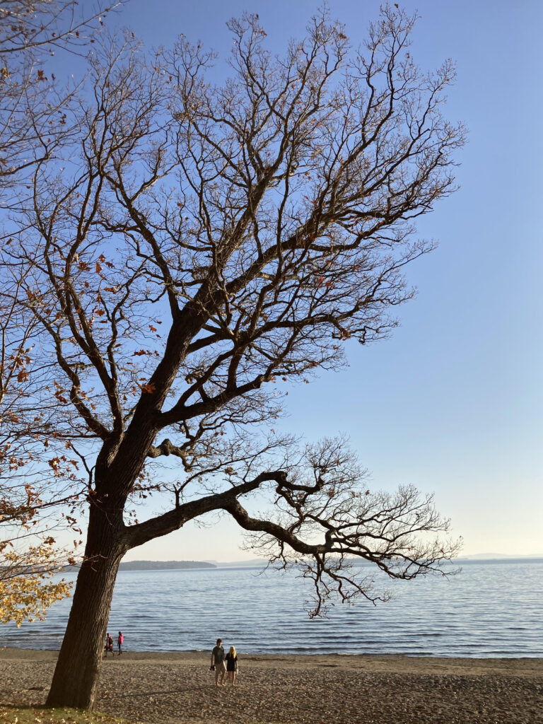 The forest floor at North Beach is covered by Red Oak leaves. Most of the deciduous trees have lost their leaves besides some Oak. The pines on the evergreens and the vibrant green and yellow Norway Maples stand out among bare branches. I heard a lot of squirrels that were chasing after each other in the leaves.