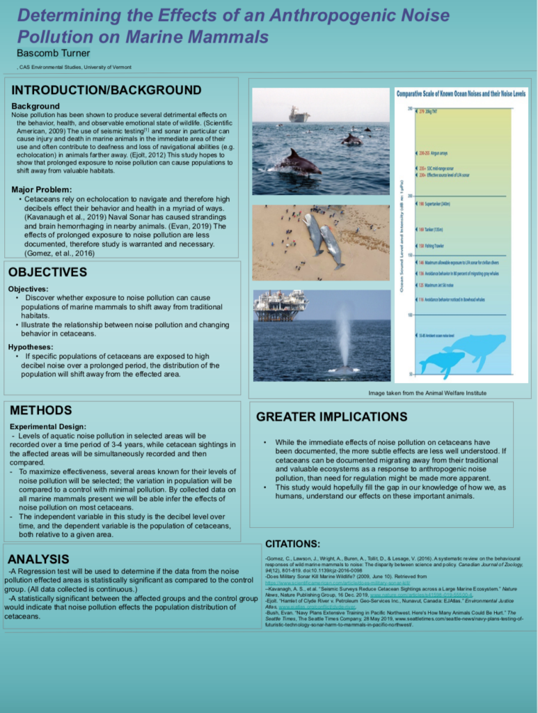 Bascomb Turner Determining the effects of noise pollution on marine mammals