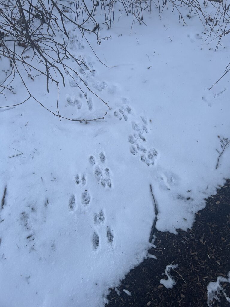 For this assignment I decided to explore wildlife around Trinity, specifically in the area of the Back 5 where the residence halls meet the wooded area behind/to the side of them. My first time exploring I encountered a striped skunk! The skunk came out from a shrub behind Mercy hall and walked into the woods and then a few minutes later came back out of the woods and proceeded to walk through the Back 5 area, scaring a few RA’s in the process. My second exploration of wildlife in the back and woods areas of Trinity I found an abundance of eastern gray squirrel tracks and even saw a few scampering around some fallen trees in the wooded area near Sichel Hall. A lot of the tracks I saw were indiscernible because of recent snowfall, but the ones I could see were small, lead to or came from a tree, and followed the same pattern as an eastern gray squirrel track. My experience using was pretty good, aside from trying to figure out which was the correct “Wildlife Signs in Burlington” project to join, everything else was pretty self explanatory. It was really simple to submit an observation and it automatically put it into the project which was nice. I wish I had more time to go more places in Burlington to find more interesting wildlife signs but hopefully I will be able to do so later in the semester or with our labs.