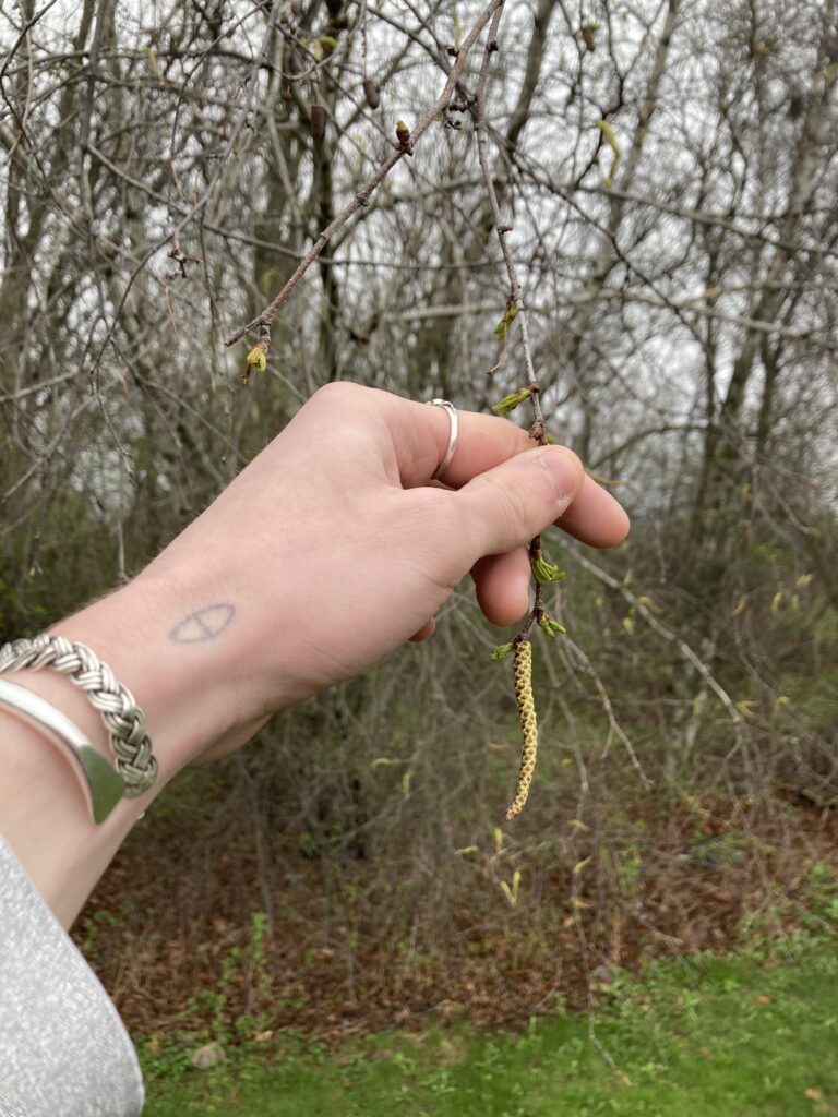 Directions: Entering Centennial Woods from the main trailhead, continue along the main path. After crossing the bridge at the Muddy Buddies spot, head left and downhill at the fork in the trail. A few minutes later, after going across the first duckboard you get to, turn left and off the trail for ~20 feet until you spot the chair-shaped stump.