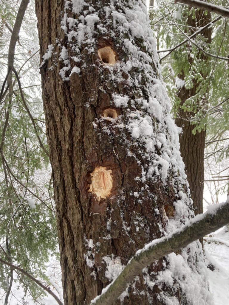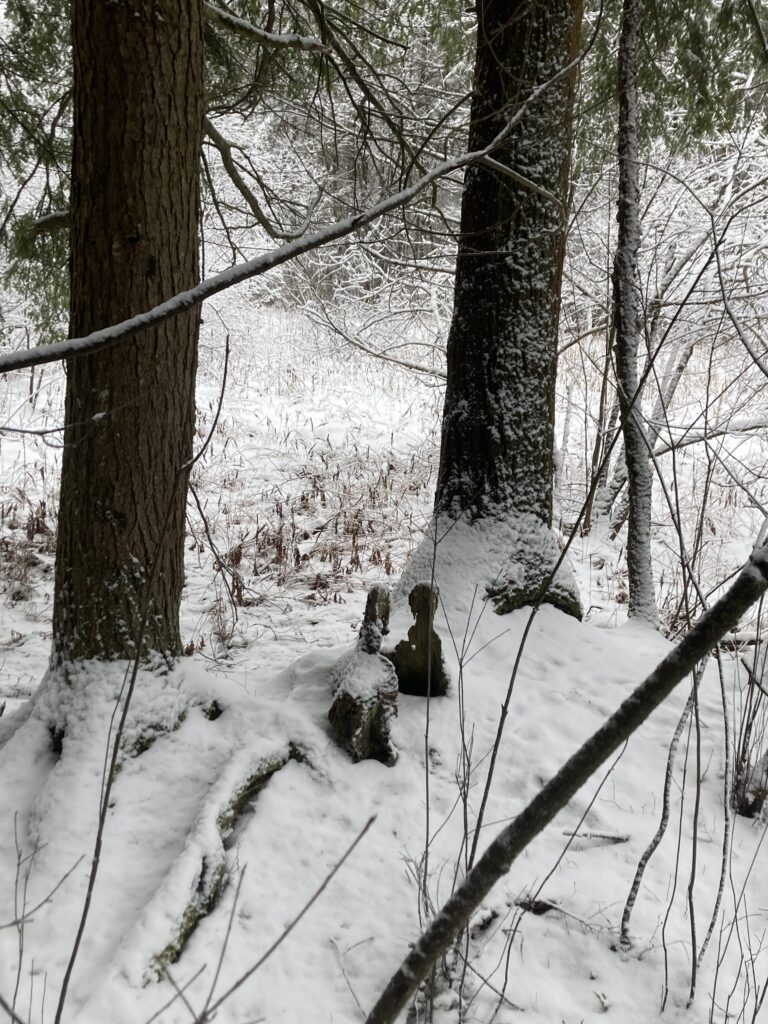 Not much has changed since my last visit a little over a month ago, other than the presence of snow covering everything. I believe that several of the buckthorn have fallen fully over and died, but I wasn’t precisely tracking them so I’m not totally sure. Other than that there is a little bit of degradation of the ferns shown in the background of the picture below, but that process had already begun last time.
