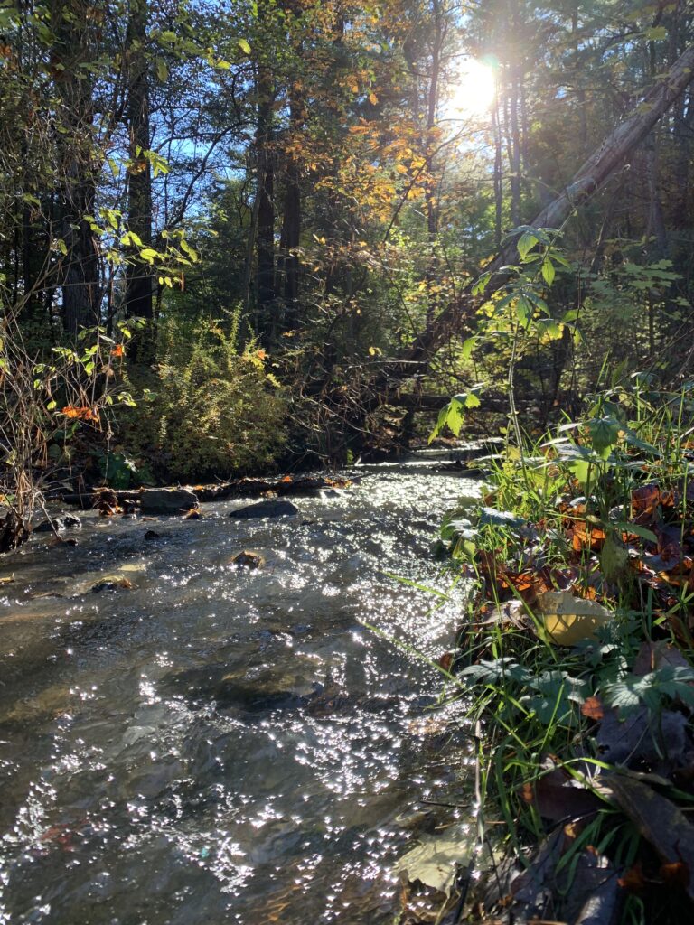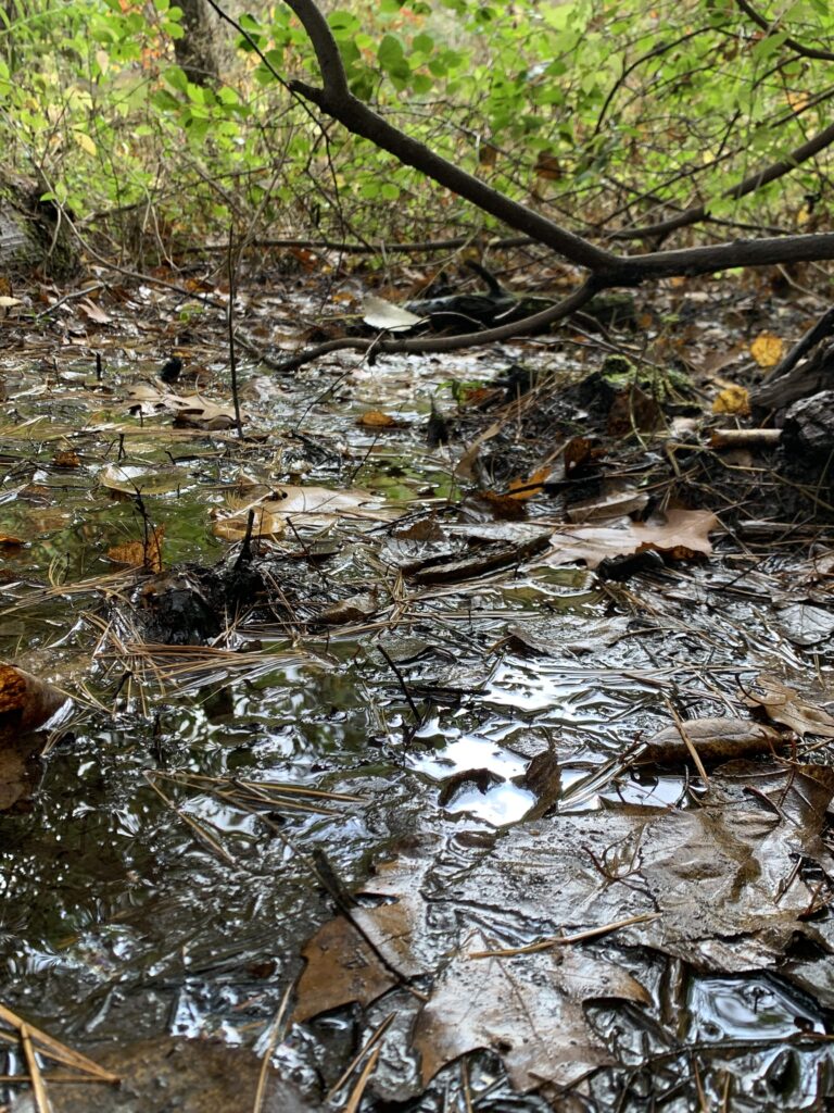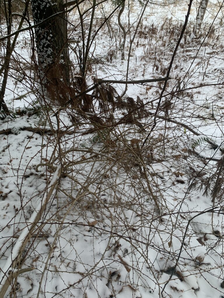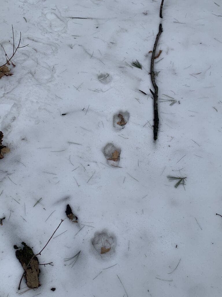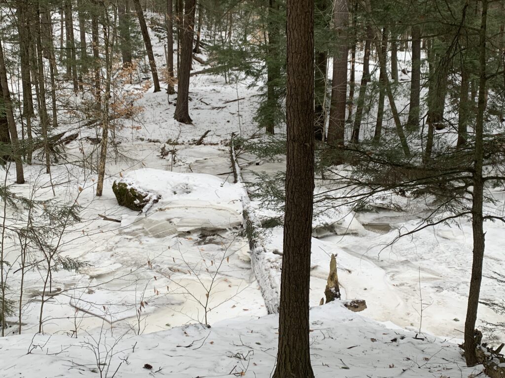 After that, I slowly made my way to my phenology site which didn’t have much in the way of wildlife, and while I love my trees –Eastern Hemlocks especially– I was looking for wildlife. Not too far from my site, the melted snow had exposed the beaten-down grasslands and the brook, so I made my way over there. The first thing I noticed when I stepped up to the Brook was little fish darting around in the water, I took my best guess when entering them into iNaturalist, but I’m still not sure.