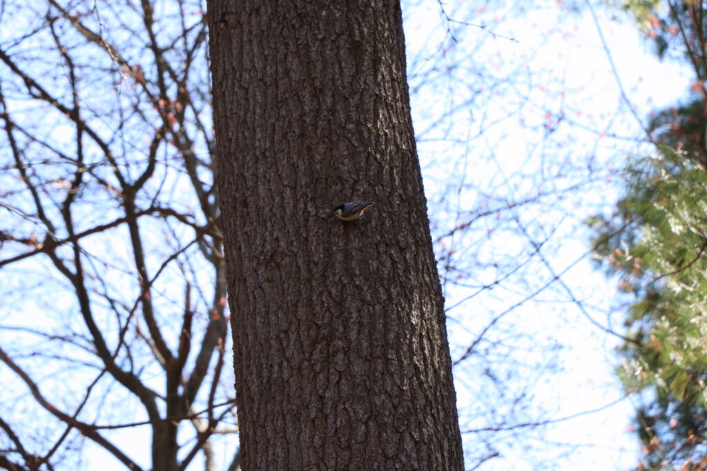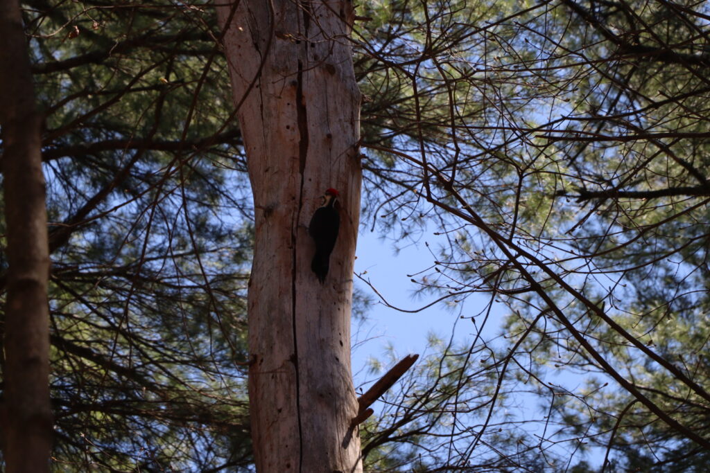 Howdy y’all, and happy Bioblitzing! I had a lot of fun –more fun than I thought I’d have– out in Centennial Woods near my phenology site visiting one last time, and I brought my good camera so I could take some pictures for the Bioblitz. For starters, it was such a nice day; it was cool, maybe low fifties with a little wind, and I couldn’t have been happier to be outside. As I entered the woods, I pulled my earbuds out of my ears, took the lens off my Canon, and started scanning what was before me with my eyes and ears. It was engaging and kind of exhilarating; I’d hear a call and whip my head around to see what was there, and that’s what led me to my first find… a gorgeous Pileated Woodpecker maybe sixty to seventy feet up in a dead pine tree.