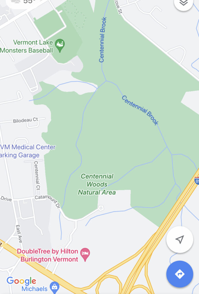 How to get to my place: To get to my place, you enter Centennial at its entrance on Catamount drive. Simply follow the trail until you get to the fork with all the Eastern white pine trees. Head right, down the slope, until you reach the water. Then, walk about 10 feet upstream, and you’ve made it!