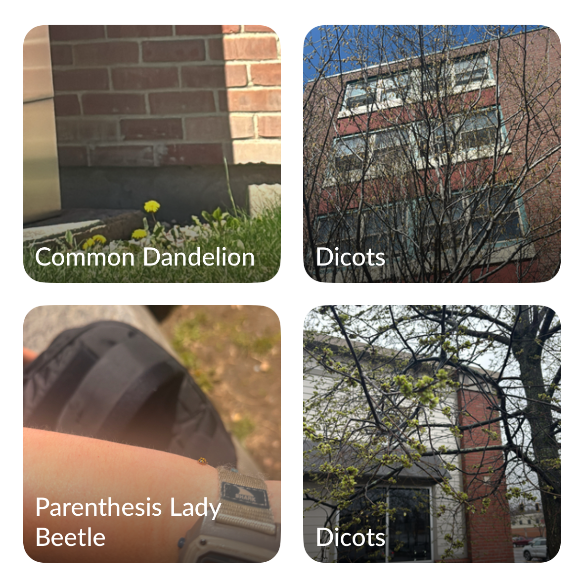 At the University Mall, I encountered 3 types of dicots, a common lilac bush, and juniper bushes. While walking around UVM, I encountered lady bugs, ants, dandelions, and much more.