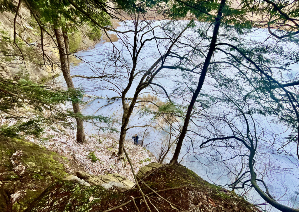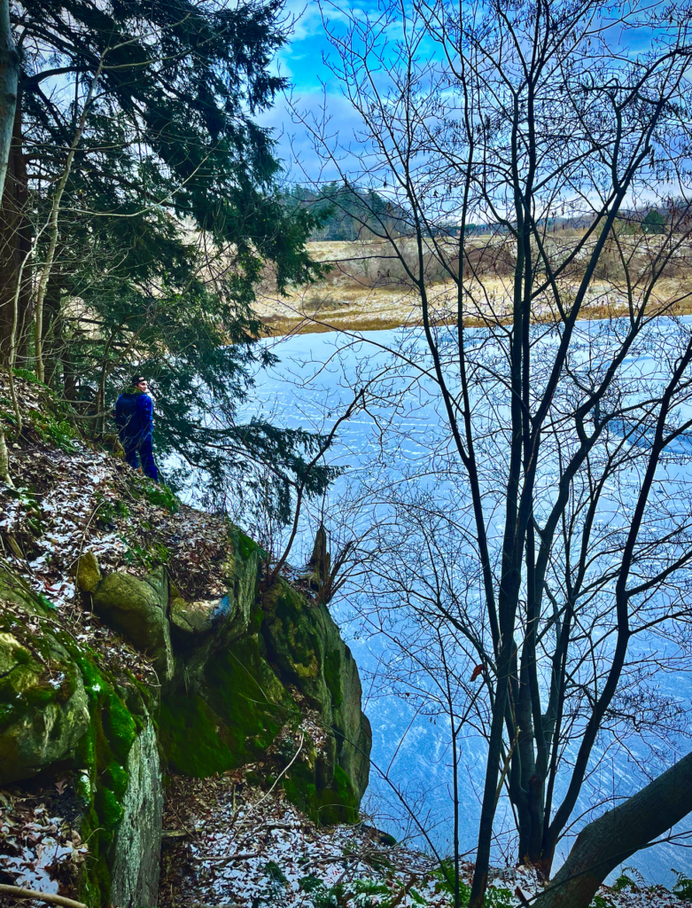 On Thursday, I got to see my phenology spot for the last time before the end of the semester. I arrived in my warmest outfit yet and made my way down to the Sea Caves. This was by far the hardest it has been to get to them as the ground was frosted over, making it easy to slip in the cold snow.