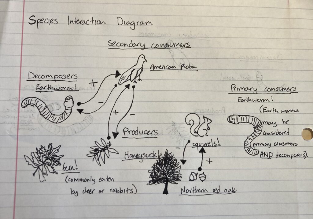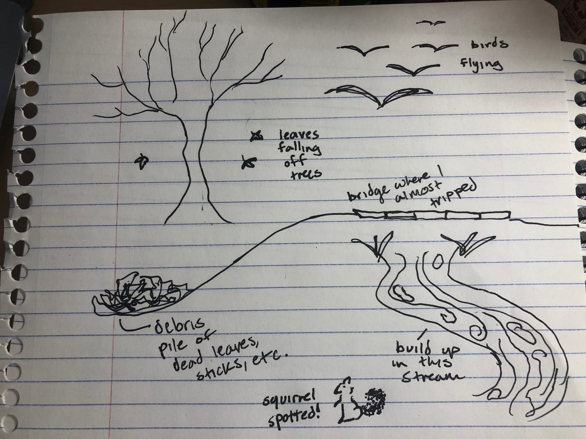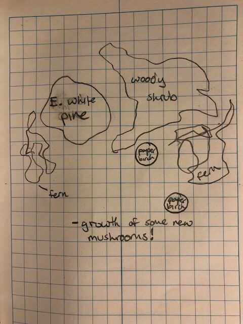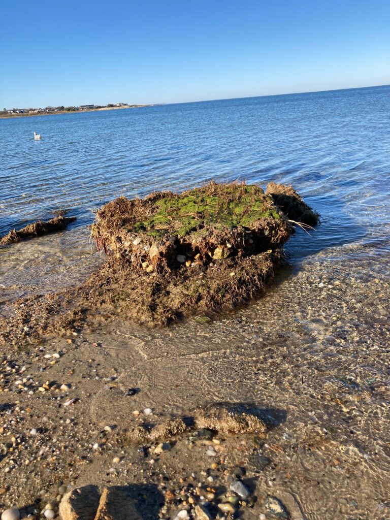 Unfortunately, for the last week of the phenology blog, I am not in Burlington, and am instead at home on Martha’s Vineyard. Last time I saw my spot at home was right before I left in January. The ground was hard, the trees were bare, and decaying leaves and matter covered the forest floor. The area I focused on is a section of forest that backs onto a pond. Coming back now, the leaves are lush and full, and signs of new life are evident through this, flowers, buds, and even a goose and her goslings! The low laying vegetation had also grown in, and the trail was more trodden down, I’m guessing because more people have been using the path with the warmer weather and influx of people for the summer season. Low laying vegetation included ferns and moss. I also saw water willows and honeysuckles, which are an invasive species here. The name of the overall area I went to is called Sheriff’s Meadow, which includes an area designated as a salt marsh ecosystem.