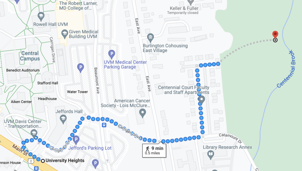 Adjacent to campus, Centennial Woods is one of the University of Vermont’s ten natural areas that is managed by the UVM Environmental Program as well as the Vermont Land Trust. On the edge of the Burlington city lines, it is about a 10-minute walk from UVM’s central and athletic campuses. The area contains about 70 acres of mixed hardwoods, mature conifers, streams, and wetlands.