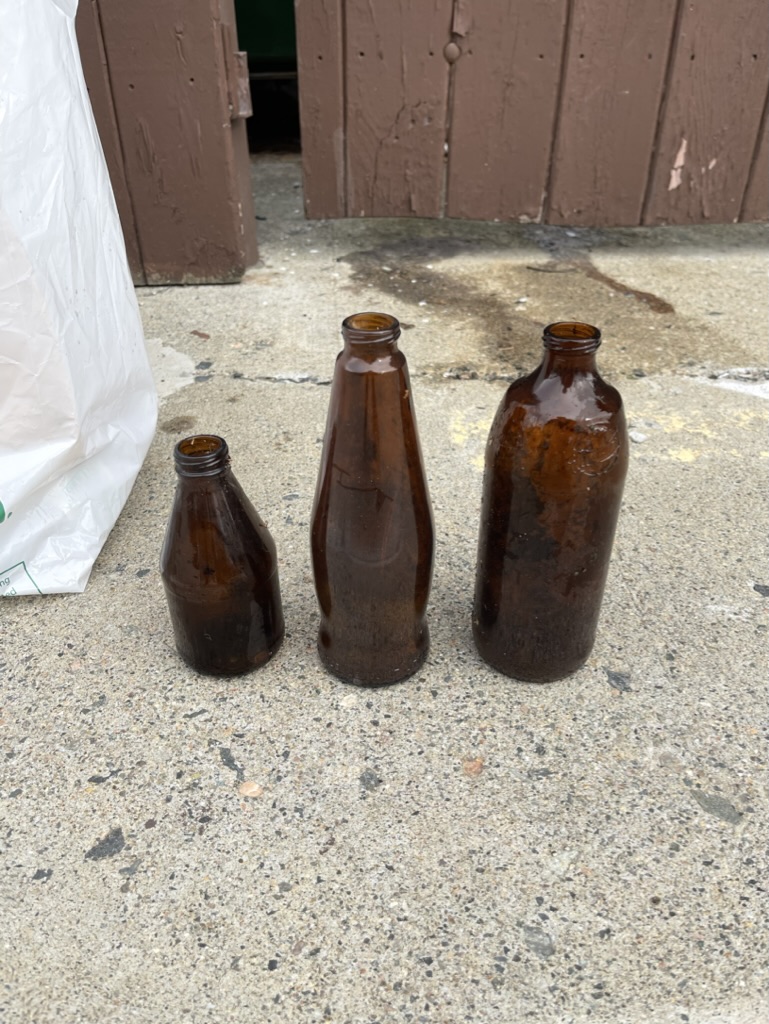 A gift: As a gift to my new place I decided to spend a little time picking up trash around the area. Some of the things I picked up were pretty ordinary like wrappers that had an expiration date of two years ago and some were a little more interesting. The most intriguing piece of litter I had picked up were antique glass beer bottles. The paper around it had withered away and the shape of them makes you wonder how long these bottles have been here for.