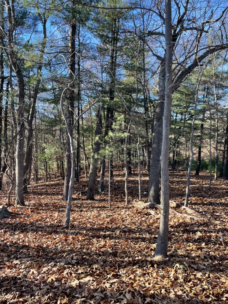 Comparing both sites: At my Thanksgiving phenology site, the woods are predominantly made up of Red Oak trees and North White Pines. The Red Oak leaves cover the ground completely and the pines are reluctant to let go of their own leaves. There isn’t much understory trees nor any shrubbery which crowds the floors unlike Salmon Hole. At Salmon Hole, of course there are trails and walking areas where there are no plants or leaves in the way, but in the thick of the woods it’s nearly impossible to walk around from the amount of shrubbery and understory there is. The vegetation also differs quite a lot. At my Salmon Hole site, there isn’t necessarily a dominant tree. The species are very diverse and consist of cotton woods, white oaks, birches, basswoods, and more.