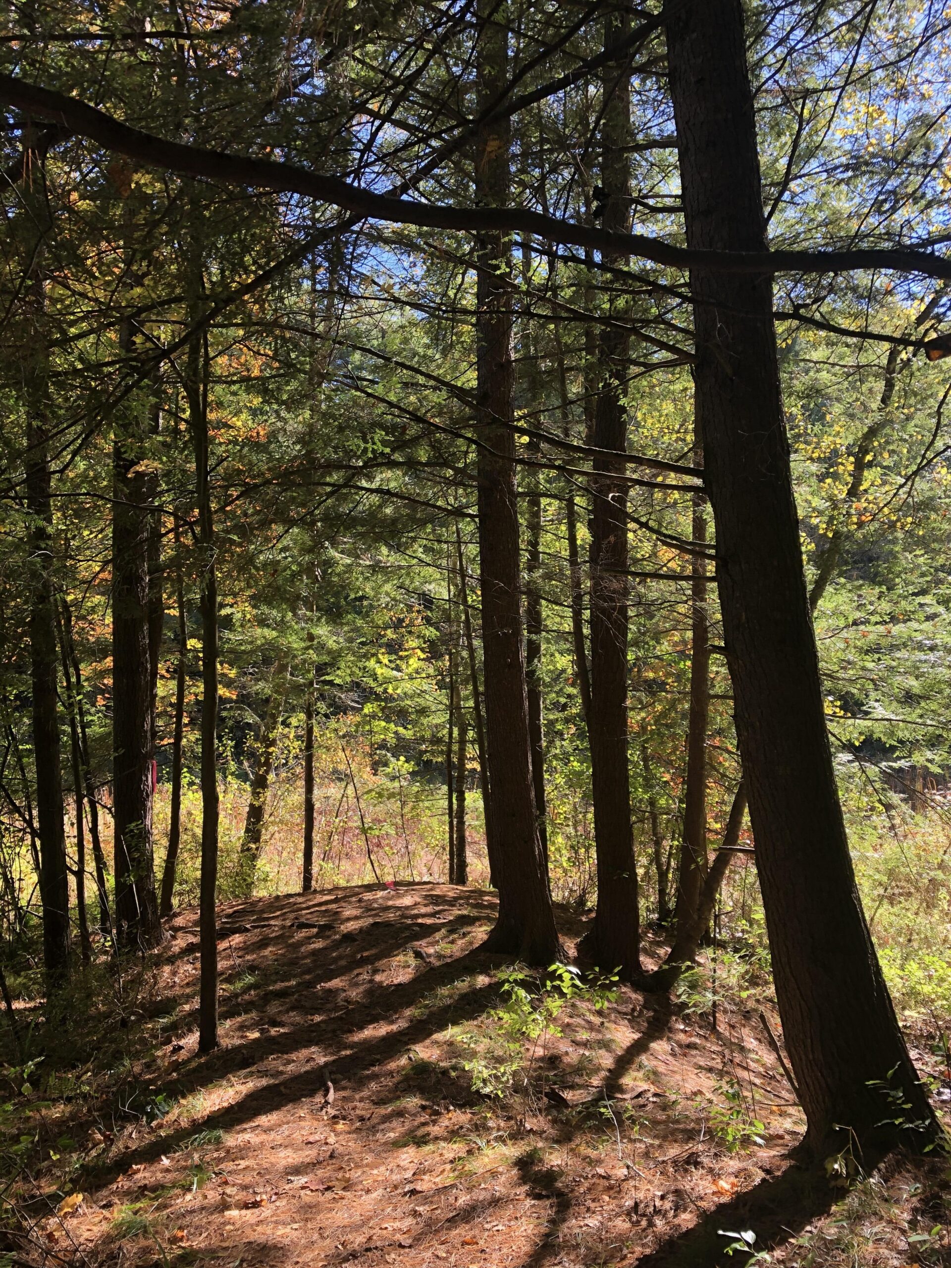 There are lots of Eastern Hemlocks, Red Maples, and Paper Birch Trees in my spot. There are also many bushes of a species I have not Identified yet, but that has red berries. There is one set of trees in my spot that wound around each other as they grew, so now they are entangled together which I think is very cool.