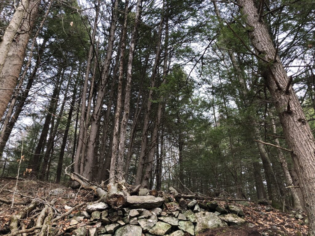 One of my favorite things about this spot is all of the old stone walls and stone foundations that it has. They can be seen all along the trails and in the pasture. This is something we talked about a lot in class. This shows that people used to live here and I think that’s really cool and special to think about. This land used to be so much different than how it is today and it is crazy to think about what it might have been like back when it was a farm and settlements were here because today it is in the middle of the woods and cars could barely even get to where the settlements used to be.