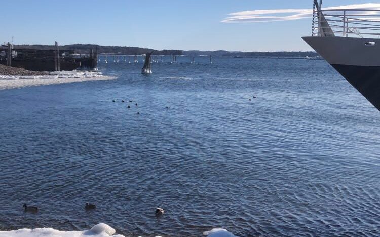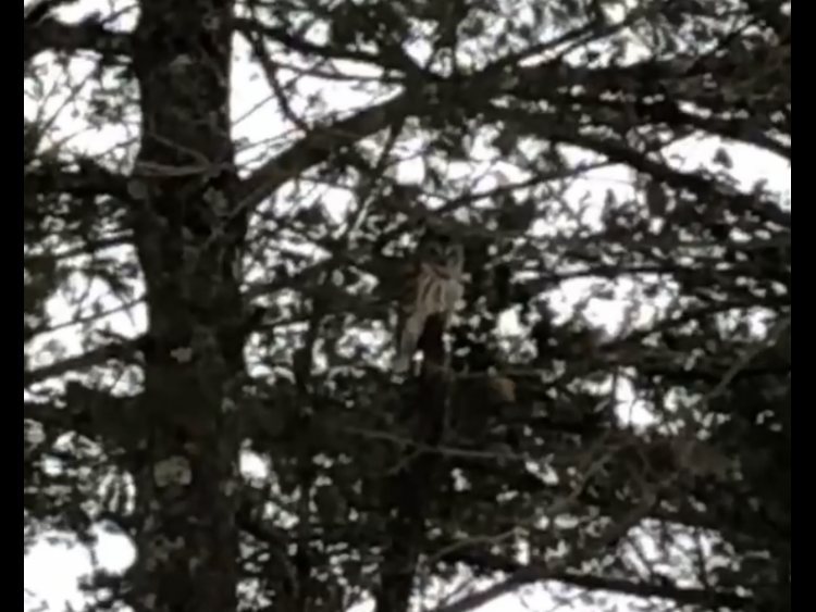 I have been observing the winter ecology throughout Burlington. The most prevalent things I have taken note of include the bird species. I was surprised to see a bunch of ducks swimming by the icy shore in Lake Champlain because it was only nineteen degrees out when I took this photo. I had assumed all ducks needed to migrate to survive the cold. But now I have learned that some ducks stay and remain active in the winters. After some research I think that these ducks are Goldeneyes. I also got to see a Barred Owl during my lab in Jericho Forest this week.