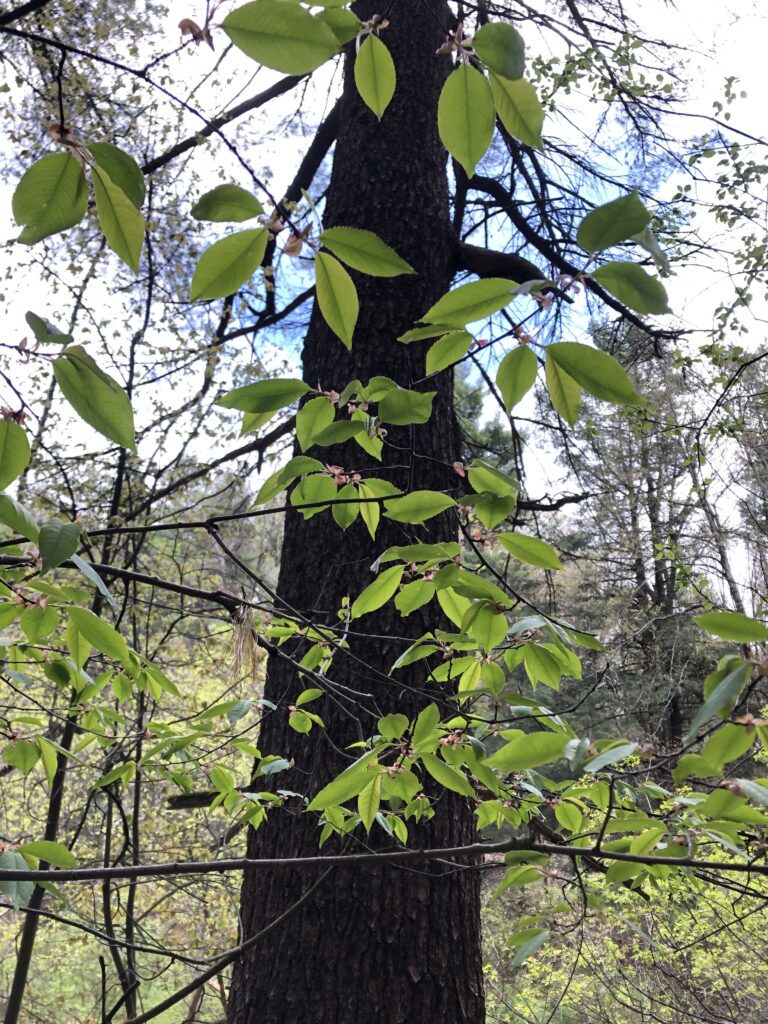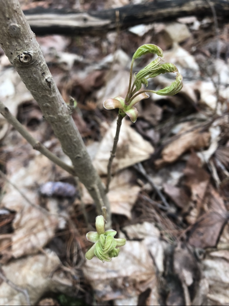 This week I took my final venture out to my phenology place in Centennial Woods. The woods was alive with birds chirping and singing. I saw a cardinal and I ran into a few dogs with their owners along the trail, as I fortunatly often do. Even though it has taken Burlington a while, it is finally starting to get warm so everything is starting to get greener and more colorful with the arrival of spring. The buds that I saw from my last visit are starting to bloom, and there are more of them. The trail to my spot is more packed down and defined now, you can tell all of the trails are starting to be used a lot again now that it is getting warmer.