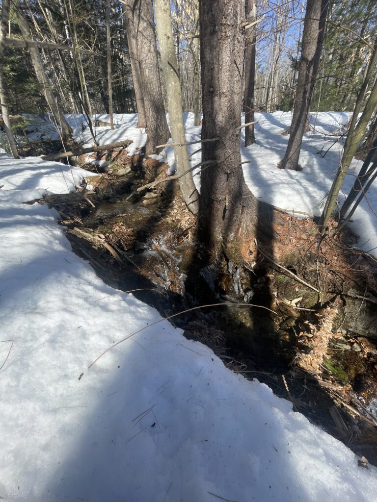 The trees in this area are definitely younger in age, however I think the forest is entering into a late successional stage because the primary composition of the forest is Oak and Pine and there was a significant amount of early successional trees that were dying off. The other woody plants around the river all seemed to have died during the winter, but a few were starting to bud with the warmer weather we have been having. I also noticed the sound of woodpeckers up in the trees while I was there and I saw evidence of holes that had been left by them. I also noticed that the river in this spot was moving significantly faster than the river at my phenology spot in Burlington. I think this is due to the fact that an upper portion of the river had been straightened out by humans so it would not flood our neighbors driveway. This human alteration of the river does not allow it to flow naturally and causes it to move at a faster pace.