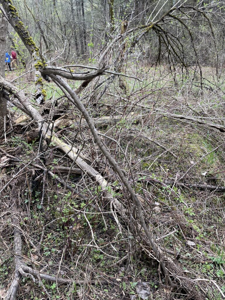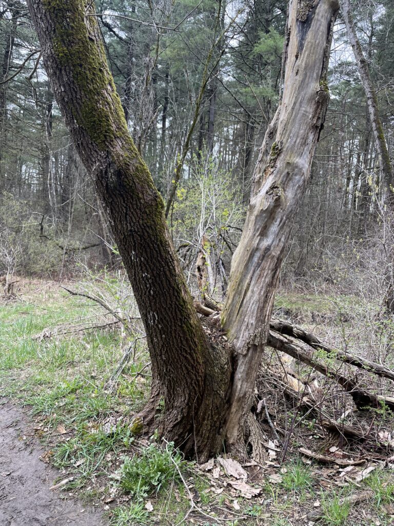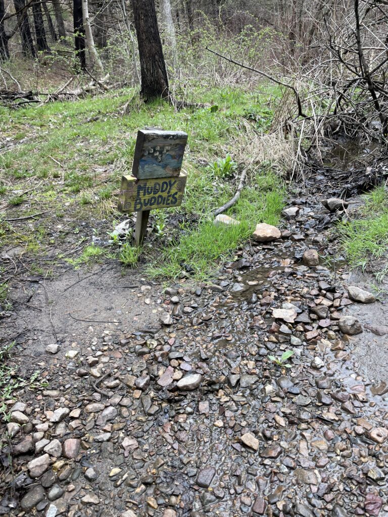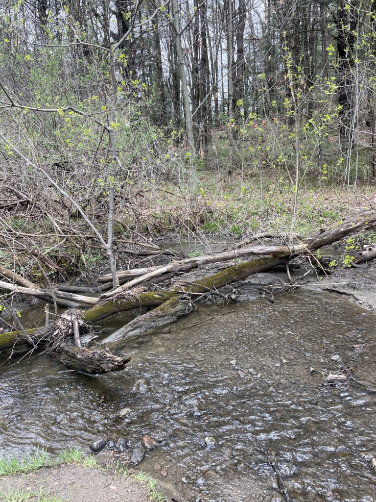 There are multiple markers around my spot that I have gotten to know and recognize over the past two semesters. The major landmarks include The split ash tree which marks where I split off from the trail. Another one is the wooden bridge that crosses right over the stream at my spot. The third major landmark is the downed tree that is across the stream. The minor, or smaller, landmarks include the piles of wood plants that line the side of my spot. Also the small sign that says “Muddy Buddies” is another minor landmark.