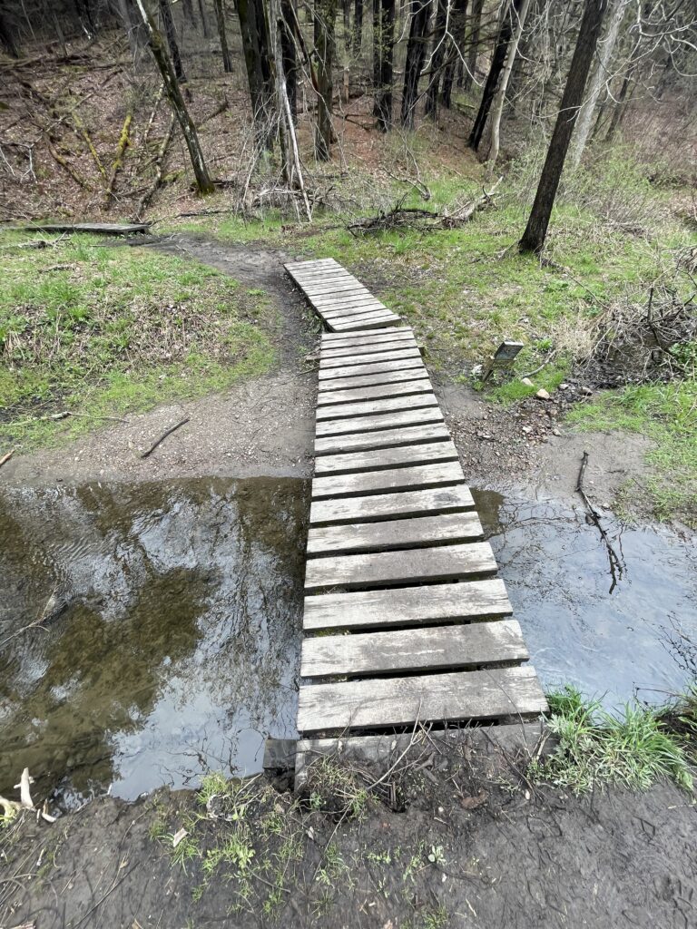 In addition to the phenological changes I have observed in my phenology spot, there has also been some evidence of human change. The most notable of these human changes is the addition of wooden bridges to help people avoid walking through the mud. Every time I have come back to this spot I have noticed there are more wooden bridges along the path, and it seemed like this time there was significantly more than the last time. I also have noticed the wear on the grasses in the places that people walk. I have noticed that some bare spots have appeared now that the grasses are growing again, in places that are off the trail. I think I had some part in this because one of the bare spots is where I like to stand when observing my phenology spot.