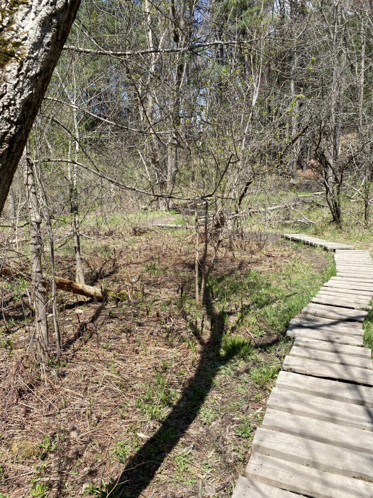 The Centennial Brook has become a familiar major landmark with me. It makes its presence known from the tranquil babbling that you can hear as you approach my site. I recognize that the dynamics of my site would not be the same if the brook was not there. In addition, I have had the privilege to watch various young plant species grow over the months like a sugar maple and various birch trees. Lastly, a minor landmark that phenologically does not contribute or get affected but helps define my site is the wooden walkway that divides my site.