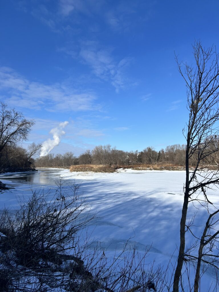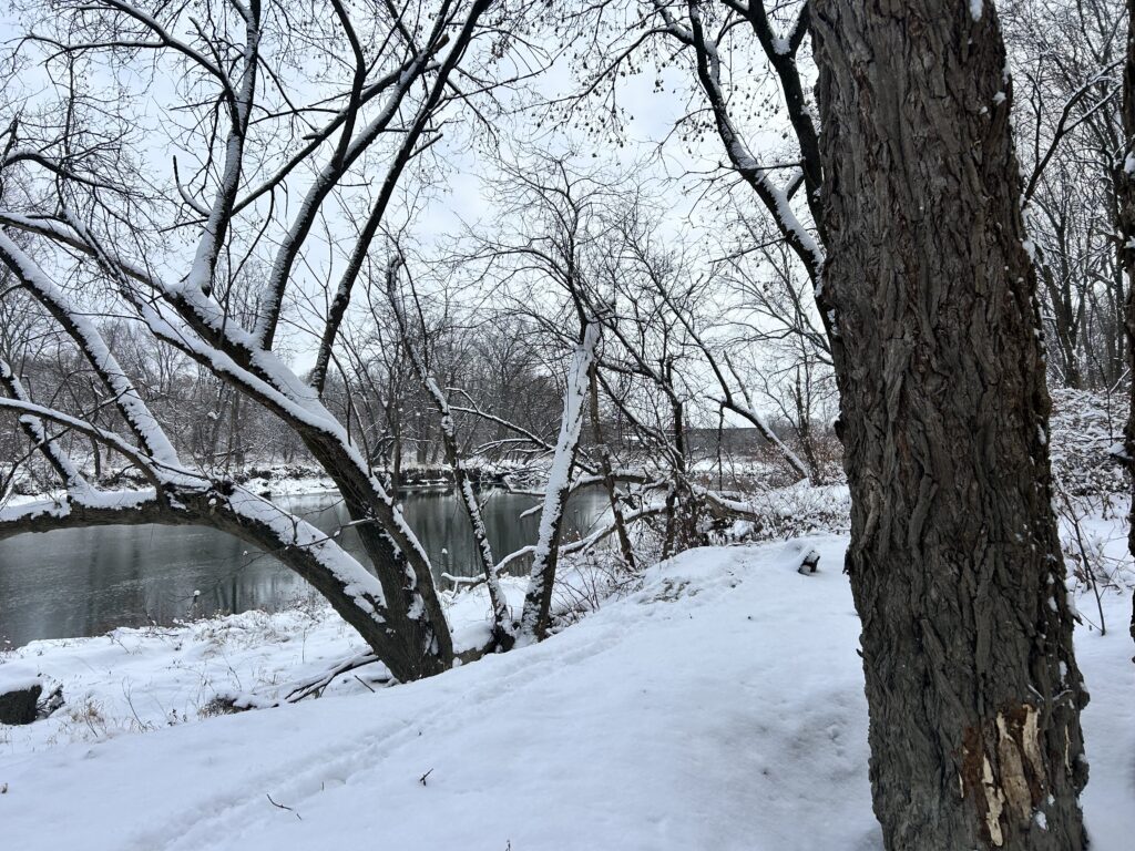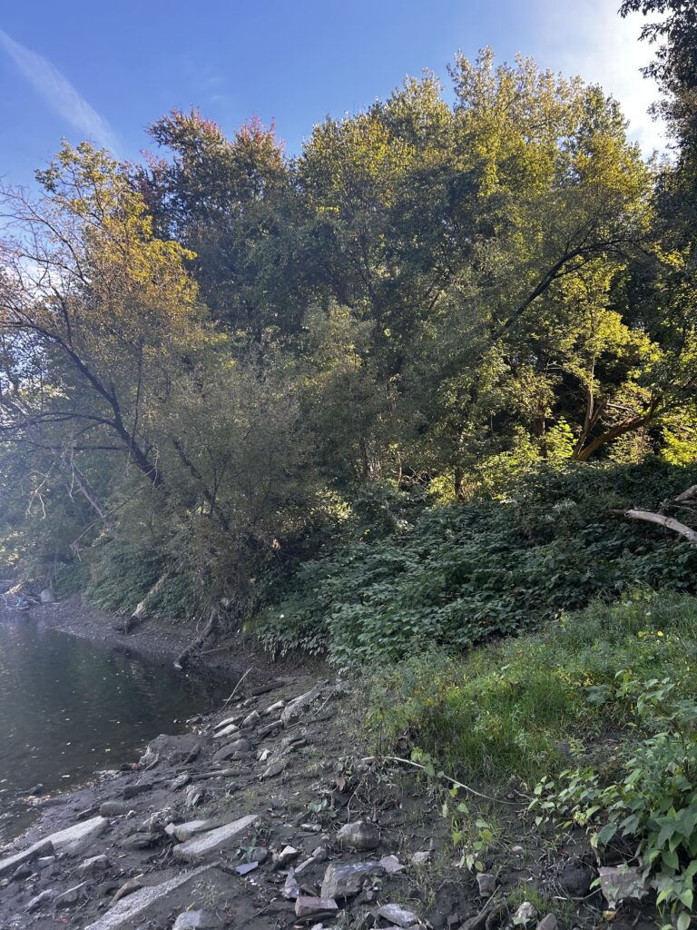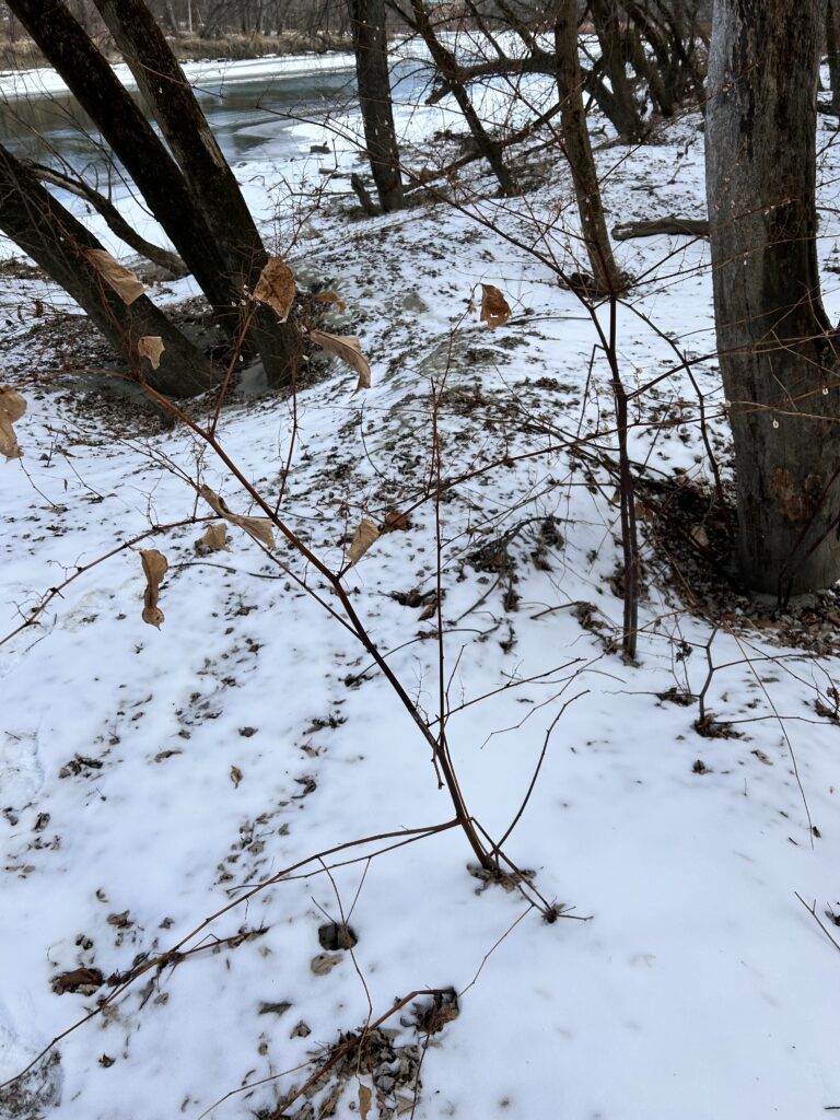 Visiting and becoming more educated about my site has revealed a few landmarks that I observed throughout the seasons as they changed. Firstly was the large Japanese Knotweed bush that was thriving, died, and is now blooming again. Due to it’s invasive nature, it would have been beneficial to remove the plant in the winter when it was dead. Secondly, I observed the status of the riverbank and the accumulation of trash changing from fairly polluted, to iced over, then even more polluted then before. Finally, I observed the change, or lack of change, of the rock pile at the back of my site. While little physical differences were observed of specifically the rocks, it was a great way to see the difference in coloration of the site throughout the season.
