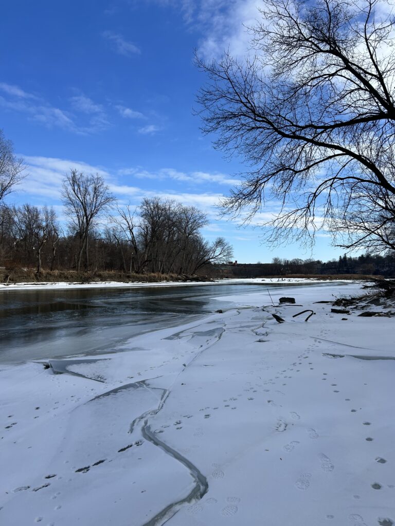 The first time I visited my phenology spot, it was bursting with life: trees full of leaves, geese calling out, ants crawling by, grasses rustling in the wind. As the temperature got cooler, the birds flew south, animals went into a dormant state, and leaves started to turn vibrant oranges and fall. It soon became a peaceful scene with a blanket of snow lying over the ground and ice occupying the space where the river once was. Wildlife was hidden or gone, aside from the occasional prints and teeth marks from a beaver. With time, my site has now begun to bustle with life again, with bird calls growing louder by the day and buds breaking to reveal vibrant green leaves.