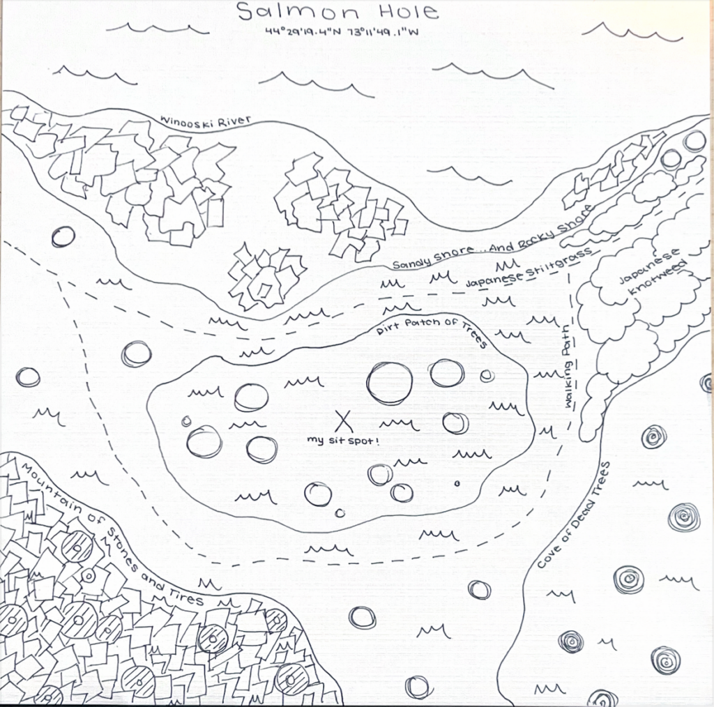 I feel as though I can be appreciative of the nature at the site and educated on an intellectual and emotional level of the history and current status of the site, however, I do not feel I am a part of the site. This is because there are many individuals who live at Salmon Hole and I feel as though I am entering their home. I love how I have seen this site change, evolve, live, rest, and live again, but I am not a part of that phenology. I have had my own phenological changes this past year: adapting to life in Vermont, meeting new people, developing new passions, and discovering my values. Both Salmon Hole’s phenology and my own can be at the same time, but I have not impacted the site’s changes. I have learned so much throughout this past year returning and observing my phenology spot and I plan to continue to visit and check up, making sure it continues to thrive and improve it’s health over time.