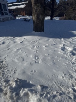 -I mostly saw grey squirrel tracks. They are very easy to determine based on appearance and location. Most of the tracks I found lead to and from various trees, which was a key clue for me. With the fresh snow it was easy to spot these tracks!