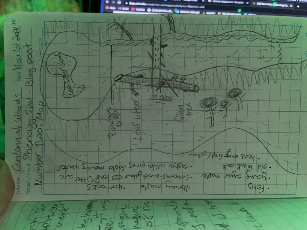 As I walked down to my spot I pondered for a while upon the question of whether I consider myself a part of my phenology spot. As I arrived, I had just settled on an answer: no, I am not. Today, my spot healed me and my emotional troubles. I felt soothed and happier after arriving. This place can and has done a lot of good for me, but I am not doing any good for it. I don’t do anything in my power to take care of it, clean it up or protect it. I go, I sit, and I leave, but I don’t leave it better off than I found it and I think to truly be a part of a place, that’s what you must do.