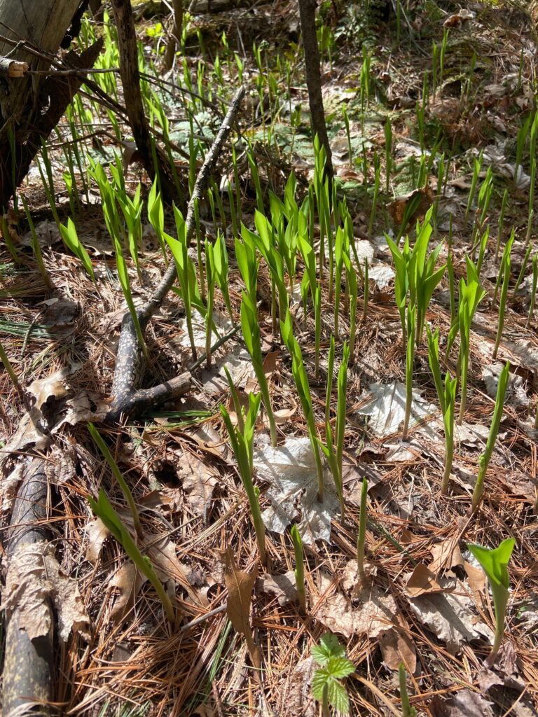 I also saw a lot of other species popping up in centennial, one thing that I was ecstatic to see there was Fiddleheads or Ostrich Ferns! Those guys were everywhere! We had just learned about these fun ferns in one of our recent NR 2 labs and how beneficial they are for floodplains. I’m curious to know if they were being deliberately planted there in centennial or if they’re just always around every year. My knowledge on fiddleheads is not yet extensive but I’m excited to learn more. Another species I saw pop up today was lilies of the valley. They hadn’t flowered yet and were just stems, I wouldn’t have known if iNaturalist hadn’t told me. (I’ve been getting along better with the app recently)