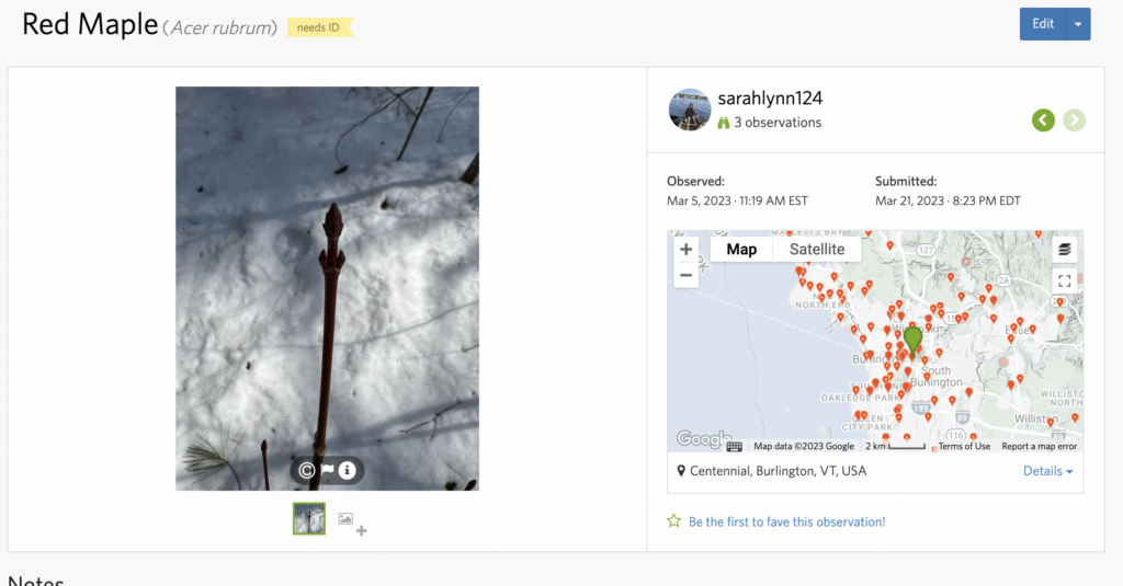 Durning the BioBlitz I spent a lot of time in Centennial woods and the bike path while walking to work. I wish it had lasted a little longer and I would have gone to other places. I ended up logging around 36 species but definitely saw a lot more. The first time I ever used inaturalist was in 2012 just to play around with it when I was younger and identify bugs and such. using it in the BioBlitz was really engaging and I like the friendly competition between lab groups but I really just like seeing the number of species grow and looking at some species I’d never seen before and learning more about them.